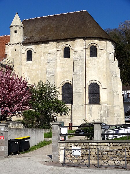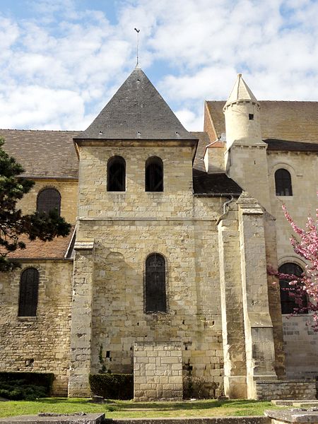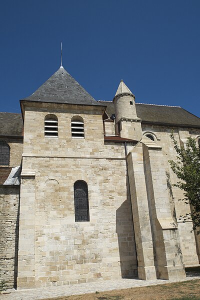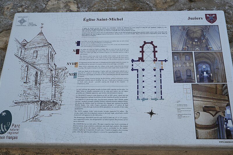 L'église Saint-Michel est une église paroissiale catholique située à Juziers, dans les Yvelines, sur la rive droite de la Seine. Ses origines remontent au Xe siècle et l'édifice dépendait sous l'Ancien Régime de l'abbaye Saint-Père-en-Vallée de Chartres, qui établit un prieuré au nord de l'église du XIe siècle jusqu'à la fin du XVIIe siècle. La dédicace à saint Michel date de 1700 ; auparavant, l'église était placée sous le vocable de saint Pierre. Dans sa configuration actuelle, l'édifice comprend une nef basilicale austère du milieu du XIe siècle, un transept contemporain et un chœur daté du troisième quart du XIIe siècle. Les parties les plus anciennes présentent une grande valeur archéologique, mais elles ont été altérées par des interventions au XIXe siècle. En 1753, l'effondrement du clocher central provoqua d'importants dégâts au transept et entraîna la démolition partielle puis la reconstruction réduite du croisillon sud. Classée monument historique par avis du 1er août 1850 grâce à l'intervention de Prosper Mérimée, l'église fit l'objet d'une restauration intégrale menée ensuite par les architectes Pierre-Joseph Garrez puis Antoine Isidore Eugène Godebœuf. Ces travaux du XIXe siècle ont notamment voûté en ogives la nef et la croisée du transept dans un style néo-gothique, ce qui a diminué l'authenticité de certaines élévations extérieures et de l'intérieur. Le chœur, quant à lui, n'a pas été remanié depuis sa construction et constitue un témoignage précieux des débuts de l'architecture gothique. Située rue de l'Église, la paroisse occupe une place engazonnée plantée d'arbres ; le chevet et l'élévation nord sont partiellement enclavés dans des propriétés privées et le cimetière actuel se trouve de l'autre côté de la RD 190. L'église présente un plan en croix : une nef de cinq travées flanquée de bas-côtés, un transept aux bras inégaux — le nord débordant et le sud abritant le clocher provisoire — et un chœur de deux travées avec abside en hémicycle intérieure et pans extérieurs. Une tourelle d'escalier, contemporaine du chœur, occupe l'angle sud de la première travée et dessert aujourd'hui les combles ; la sacristie proprement dite est remplacée par l'aménagement de la première travée du bas-côté sud. La nef, à deux niveaux d'élévation, est recouverte de fausses voûtes d'ogives en bois plâtré du XIXe siècle, tandis que les bas-côtés conservent des plafonds plats en bois. L'intérieur se caractérise par la simplicité et la justesse des proportions : grandes arcades en plein cintre, colonnes rectangulaires à arêtes vives et fenêtres hautes plus larges qu'à la période romane ancienne, aboutissant à une lisibilité visuelle qui attire le regard vers le chœur. La croisée du transept conserve un arc-doubleau en plein cintre d'origine et des piliers engagés formant des supports cruciformes ; le croisillon nord, voûté d'ogives après le milieu du XIIe siècle, présente des culs-de-lampe sculptés et une clé de voûte à décor végétal. Le chœur se distingue par un ordonnancement inhabituel des élévations : un triforium précoce mais étroit, des arcatures plaquées et des proportions où le premier niveau occupe une large part de la hauteur, le tout associé à une sculpture de chapiteaux soignée. Les tailloirs, les ogives et les formerets montrent des profils caractéristiques de la transition entre roman et gothique, avec des clés de voûte en forme de petites rosaces et des bases en grande partie refaites. Extérieurement, l'édifice est bâti en calcaire local avec des appareillages variés ; le chœur, soigneusement appareillé, conserve des contreforts saillants et une corniche du XIIe siècle ornée de corbeaux et de motifs sculptés. La façade occidentale, remaniée après 1850, a perdu une partie de son caractère ancien : le portail et le tympan ont été fortement refaits et des modifications ont été apportées aux ouvertures hautes du pignon. La tourelle d'escalier et le chœur restent en revanche authentiques et constituent l'élément le plus significatif de l'édifice pour l'étude des débuts du gothique dans la vallée de la Seine. Après les troubles révolutionnaires et la perte du mobilier — que Eugène Lefèvre-Pontalis jugea dépourvu d'objets anciens dignes d'attention — l'usage cultuel a repris progressivement et l'édifice dépend aujourd'hui du secteur pastoral de la rive droite de la Seine avec siège à Meulan. L'intérieur nécessite encore des travaux de conservation en raison de l'humidité et de mouvements de maçonnerie ; l'architecte en chef des monuments historiques a proposé une programmation en plusieurs tranches qui reste à financer. L'église accueille des offices réguliers : des messes dominicales anticipées sont célébrées un samedi sur deux à 18 h 30, en alternance avec la paroisse de Vaux-sur-Seine.