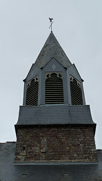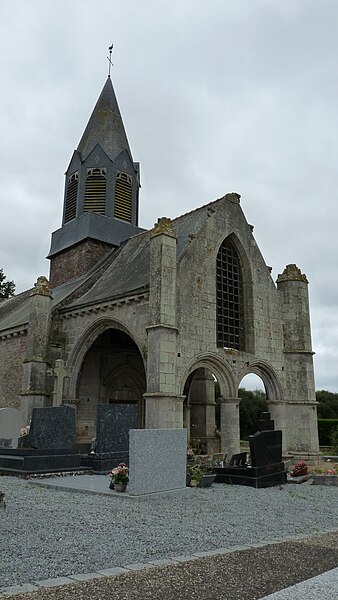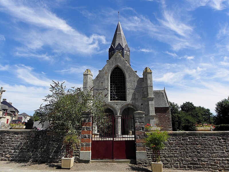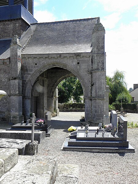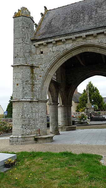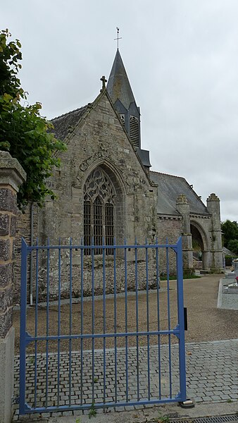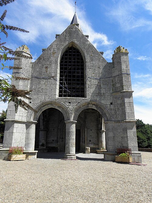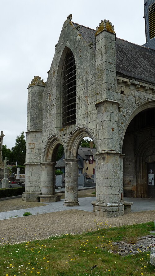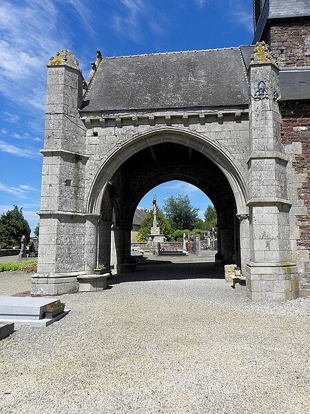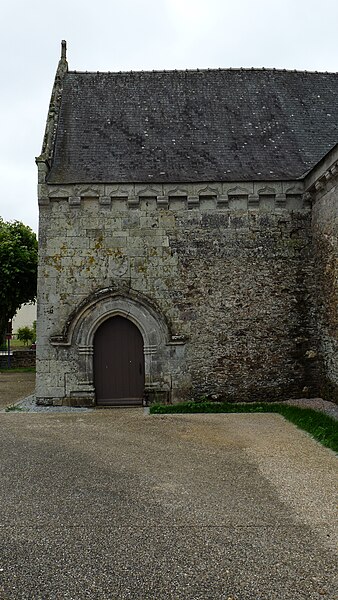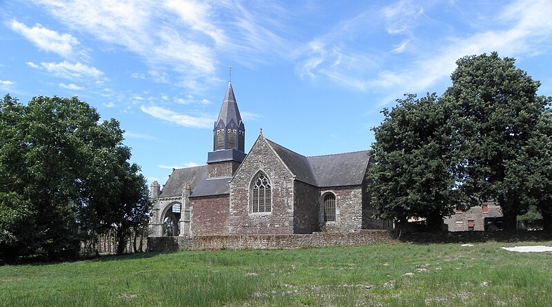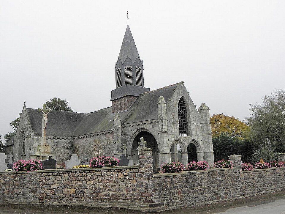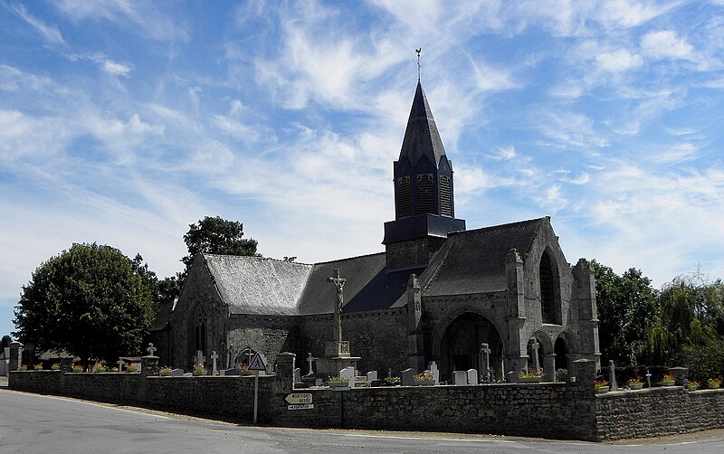 L'église Saint-Hubert de La Nouaye, située au centre du bourg dans l’est du département d’Ille‑et‑Vilaine, est un édifice ogival des XVe et XVIe siècles, largement remanié dans la seconde moitié du XIXe siècle. Elle présente une nef unique achevée par un chevet droit et une chapelle nord formant un volume saillant. Le clocher, reconstruit postérieurement, se dressé au bas de la nef. Un vaste porche monumental, adossé à la façade occidentale, s'ouvre sur trois côtés par une double arcade et constitue l'élément d'intérêt principal de l'édifice ; ses contreforts de plan polygonal sont remarquables. Le porche, daté du début du XVIe siècle, a été en partie repris : ses arcades latérales ont été ouvertes en sous-œuvre et l'arcade ouest est percée d'une baie dont la grille comporte les fixations d'un vitrail. Longtemps considéré comme réservé aux lépreux, ce porche se distingue par l'originalité de sa structure ouverte et par la qualité de son décor. On rattache cette singularité au mariage d'une dame noble avec Pierre de Rohan, ce qui explique les rapprochements stylistiques avec le chantier de Broualan, lié à cette famille. L'intérieur, réaménagé au XIXe siècle, a toutefois conservé sur le bras du transept nord une voûte d'ogives portée par des arcs en bois. À la même époque, la verrière du chevet a été déplacée au bras sud, probablement lors de l'installation du retable, et le mur sud de la nef ainsi que la flèche du clocher ont été repris. Le cimetière alentour est conservé ; les vestiges du socle de l'ancien calvaire font l'objet d'une protection au titre des monuments historiques. L'église elle-même est inscrite au titre des monuments historiques depuis le 3 octobre 2014.