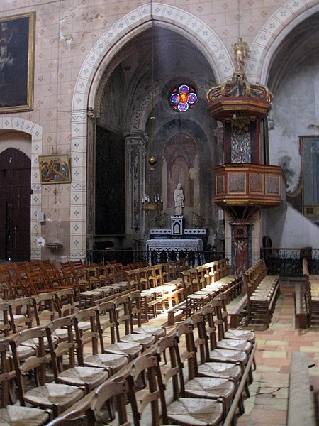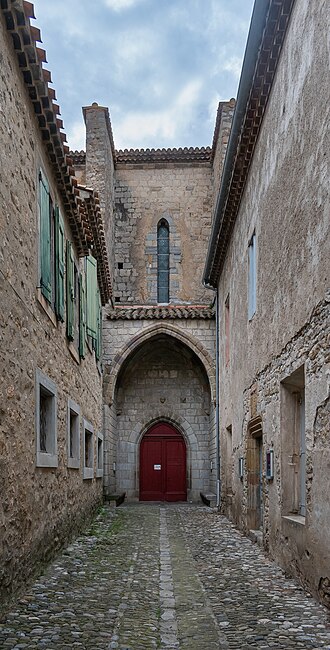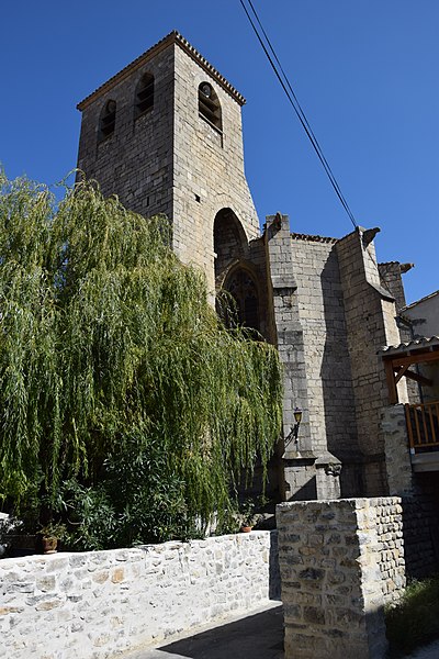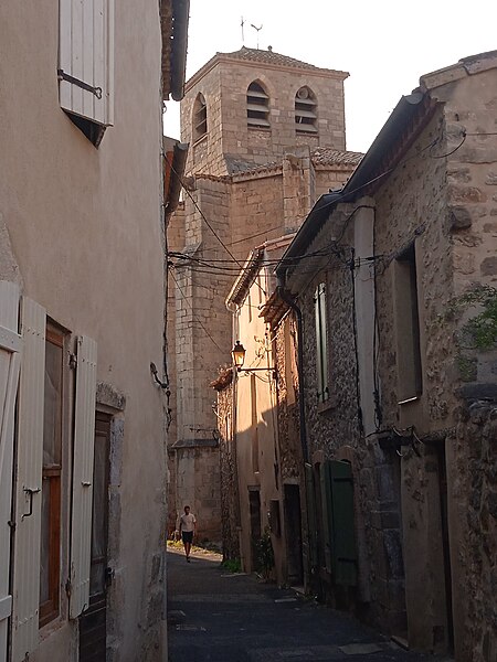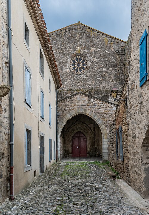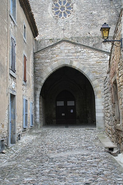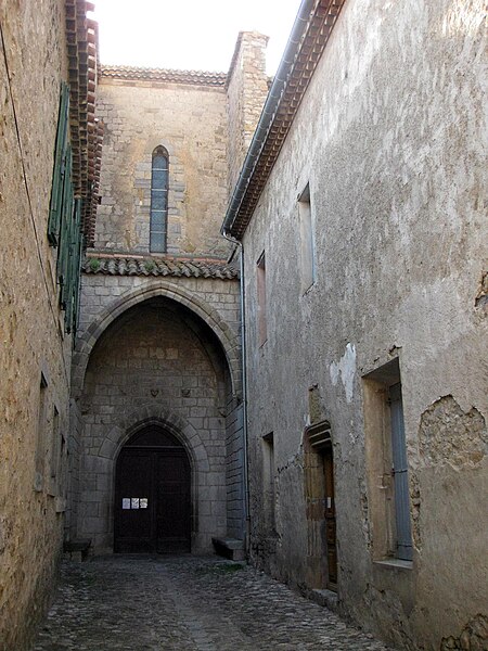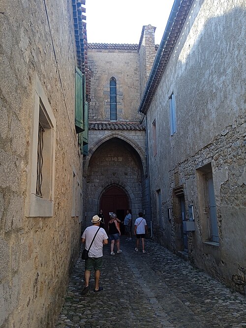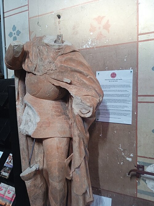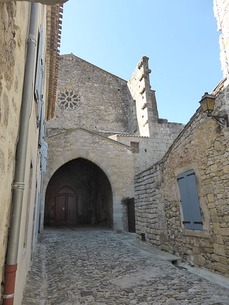 L'église paroissiale Saint-Michel se situe à Lagrasse, dans le département de l'Aude (région Occitanie). L'édifice est classé au titre des monuments historiques depuis l'arrêté du 23 avril 1925. Sa construction principale remonte au milieu du XIVe siècle (1340-1350), avec des campagnes de travaux poursuivies au XVe siècle. La première église paroissiale, attestée dès 1119, se trouvait à l'extérieur des murailles ; le 17 septembre 1359, les consuls de la ville conclurent avec l'abbé Elie de Lagrasse le transfert de Saint-Michel à l'intérieur des fortifications. Un acte de plainte déposé par l'abbé et les religieux le 24 mars 1398, concernant la sonnerie des cloches, permet de situer la période d'achèvement de l'édifice. Orientée vers le midi, l'église n'a toutefois pas été totalement achevée : la façade nord n'a jamais été élevée. Le clocher est implanté au sud, adossé au sanctuaire, et la façade ouest s'ouvrait autrefois sur un large portail à deux baies séparées par un pilier central qui a été surélevé. L'intérieur présente une nef flanquée de chapelles latérales et des culots sculptés de têtes humaines. Le chœur a reçu au XVIIIe siècle un décor plaqué de pilastres et de tableaux ; il a été restauré en 1890 et ses fenêtres dégagées de la maçonnerie. La nef a été couverte de fausses voûtes d'ogives, probablement au XIXe siècle. Parmi les éléments mobiliers figurent un orgue et une statue en terre cuite polychrome et dorée de saint Roch avec son chien, datée du XVIIIe siècle. Une statue de l'archange Saint-Michel, datée du XIVe siècle et vraisemblablement placée au-dessus du portail principal nord, avait disparu après la destruction du portail au XVIIIe siècle ; elle a été retrouvée en plusieurs fragments le 27 novembre 2013 lors de travaux d'assainissement, partiellement restaurée en 2014 et présentée dans l'église en décembre 2020.