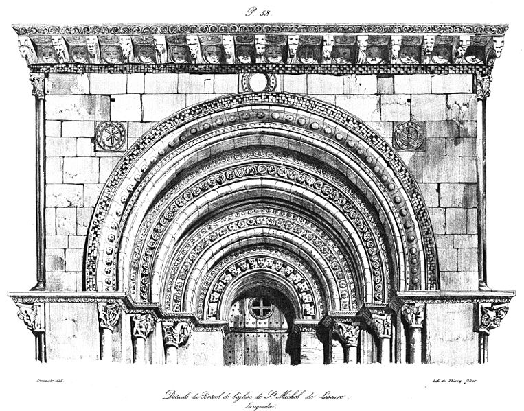 L'église Saint-Michel de Lescure-d'Albigeois, située dans le département du Tarn, est classée au titre des monuments historiques depuis 1883. Construite en pierre, elle présente une nef bordée de bas-côtés, un sanctuaire voûté et un plafond de planches recouvrant la nef. Le mur qui conduit au chœur est percé de deux petites fenêtres, chacune encadrée par deux colonnes miniatures aux chapiteaux à feuille d'eau. Le portail d'entrée, en arc plein cintre, est richement orné de motifs végétaux et de têtes humaines et animales ; les chapiteaux des colonnes du portail illustrent notamment la tentation d'Adam et Ève, le sacrifice d'Abraham et la figure du mauvais riche. À l'intérieur, quatre colonnes portent le départ d'une coupole ; des trompes dans la croisée du transept témoignent de l'intention ou de l'existence d'une coupole enfermée dans le clocher. Les bas-côtés et le sanctuaire sont voûtés, tandis que la nef conserve un couvrement en planches. De nombreux chapiteaux sculptés décorent l'édifice, avec des scènes telles que le sacrifice d'Abraham, la crucifixion, la punition des luxurieux et des représentations d'enfer ; trente-cinq pierres tombales ont été retrouvées dispersées dans l'église.