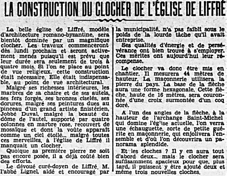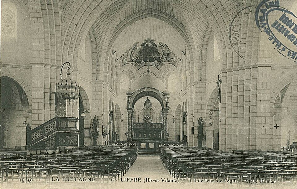 L'église Saint-Michel de Liffré, située en Ille-et-Vilaine (Bretagne), est un édifice religieux de style romano-byzantin. Conçue par Arthur Regnault, sa construction a débuté en 1888 et s'est déroulée pour l'essentiel jusqu'en 1891; la partie supérieure du clocher fut achevée en 1938. Regnault, qui a réalisé une série d'églises au plan centré, en fit là la deuxième réalisation de ce type. L'ancien édifice, datant du XVIe siècle, comprenait une nef à chevet plat et fut agrandi au XVIIe siècle par une chapelle qui fut démolie en 1837 lors de la construction des bas-côtés; il a été remplacé par l'église actuelle. L'édifice s'organise autour d'un volume central de plan centré abritant une vaste nef, précédée d'un massif antérieur formant narthex et prolongée par un chœur à chevet arrondi. L'ensemble est dominé par un clocher carré surmonté d'une flèche pyramidale. L'intérieur, éclairé par de nombreuses baies, est rythmé par quatre arcs brisés monumentaux qui structurent la nef. Parmi les éléments mobiliers se distinguent des autels en marbre polychrome et une chaire. À l'inauguration, seul le chœur était pratiquement achevé; pour le maître-autel, des marbres furent fournis par une entreprise implantée à la frontière belge, et la maison Lesage de Paris réalisa les Douze Apôtres en relief ainsi que la porte du tabernacle. Le ciborium était recouvert de mosaïques d'Odorico et, dans l'abside, une peinture signée Gaston Jobbé-Duval représentait un Christ encadré de la Vierge et de saint Michel. Les vitraux du chœur portent les armoiries de Léon XIII et du cardinal Place; l'église comprend également des verrières représentant la Vierge à l'Enfant et la donation du Rosaire à saint Dominique. Arthur Regnault est décédé en 1932; le clocher fut finalement mené à son terme par l'architecte Hyacinthe Perrin. L'église est inscrite aux monuments historiques depuis le 23 janvier 2014.