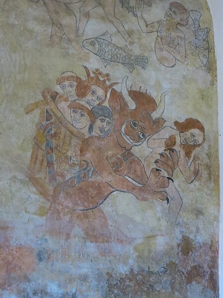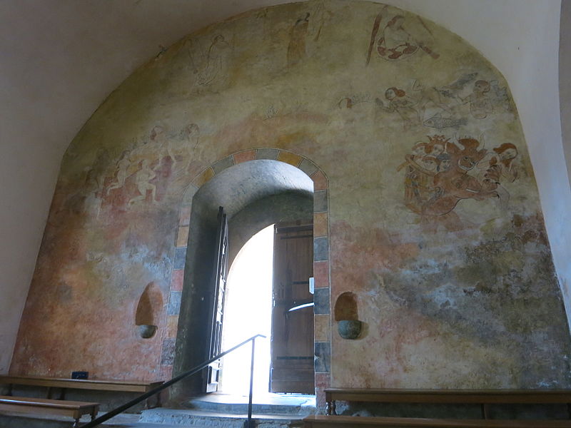 Réalisation des peintures murales représentant le Paradis, le Purgatoire et l'Enfer.