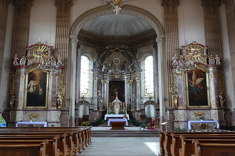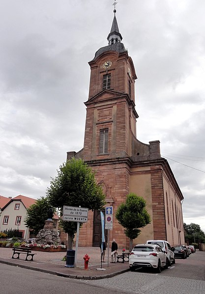 L'église catholique Saint-Michel de Reichshoffen (Bas-Rhin, Alsace) est classée monument historique depuis 1921. Elle est construite en grès des Vosges dans un style néo-classique, avec une décoration intérieure d'inspiration baroque ; sa construction, réalisée en une dizaine d'années, lui confère une remarquable unité stylistique. Elle se situe sur la place de l'église, au cœur du centre ancien, à la limite de la seconde enceinte fortifiée, sur l'emplacement d'anciennes habitations, du cimetière et de l'ancienne église. Les plans et devis de 1771 ont été dressés par Christiani père, inspecteur des Ponts et Chaussées à Strasbourg, et les travaux furent exécutés par les maîtres maçons Christian Gstyr et François Joseph Messner. La première pierre, datée de 1772, est inscrite sur le cartouche du portail principal et sur l'arc triomphal. Les maîtres d'ouvrage étaient la communauté de Reichshoffen pour la nef, et le seigneur Jean de Dietrich pour le chœur, la sacristie et la tour. Le gros-œuvre semble avoir été achevé en 1774, mais l'étage supérieur de la tour ne le fut qu'en 1779, à la suite d'un long procès entre maîtres d'ouvrage. Jean de Dietrich, protestant, avait refusé de financer le clocher d'une église catholique ; le tribunal le condamna en 1779 à en assurer la dépense et il offrit finalement un clocher plus élevé que prévu. L'édifice porte de nombreuses marques de tâcherons attestant le travail des maçons. Le décor stuqué des pilastres est attribué au plâtrier Rosio (ou Rossiau) de Flêtre, et les cartouches rocailles du plafond ainsi que l'arc triomphal sont l'œuvre du stuccateur Joseph Schaeffer. L'ensemble du mobilier d'origine, exécuté entre 1774 et 1782, est conservé. Le clocher culmine à 68,9 mètres, faisant de l'église l'une des plus hautes d'Alsace. Le carillon compte cinq cloches pesant entre 340 et 2 750 kg ; elles n'ont pas été réquisitionnées ni fondues pendant la Première Guerre mondiale. Les deux plus anciennes cloches datent de 1786 et 1812, cette dernière ayant été coulée en l'honneur de la naissance du Roi de Rome. En août 2011, trente nouvelles cloches ont été installées, constituant le carillon de l'Europe. Le buffet de tribune de Franz Schädel (1777) abrite un orgue Roethinger de 1962, tandis que l'orgue de chœur se trouve à l'avant du flanc droit de la nef. L'horloge construite par Jean-Baptiste Schwiligue, qui se trouvait dans le clocher, est aujourd'hui exposée dans le hall d'accueil de l'hôtel de ville. Sur le mur d'angle à droite du porche est réinstallée une méridienne depuis le 1er mars 2013 ; elle donne l'heure à midi et servait au XIXe siècle à régler les horloges publiques. Devant l'église se dresse une Vierge Noire, érigée en ex-voto après l'épidémie de choléra de septembre 1855, et le cimetière paroissial se situe à l'arrière du chœur. L'église abrite plusieurs mobiliers inscrits qui, conjugués à son architecture et à sa décoration, forment un ensemble remarquable.