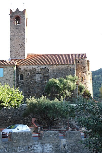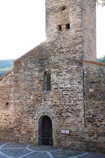 L'église Saint-Michel, de style roman, se situe à Saint-Michel-de-Llotes dans les Pyrénées-Orientales, en région Occitanie. L'édifice primitif date du XIe siècle et se composait d'une nef unique flanquée d'une abside semi-circulaire. La nef fut voûtée au XIIe siècle. Vers le XIVe siècle une seconde nef fut accolée au sud du vaisseau roman ; un agrandissement comparable a été réalisé au nord à l'époque moderne, si bien que l'église présente aujourd'hui trois nefs. L'ensemble est construit en moellons et pierre de taille, couvert de tuiles, et repose partiellement sur un tertre rocheux naturel et remblayé. L'abside conserve les caractères du chevet roman lombard : elle est élevée assez haut par rapport à la rue, percée de quelques trous de boulin et décorée de bandes lombardes formées d'arcatures, avec deux lésènes en extrémité. La voûte d'arcature continue est composée de petits claveaux ; chaque arcade retombe par un claveau commun posé sur une petite console biseautée. Les fenêtres de l'abside ont un simple ébrasement et sont surmontées d'un arc en plein cintre constitué de moellons posés sur champ, mis en valeur par un cordon de pierres plus foncées à l'extrados. Dans l'angle sud-ouest s'élève un clocher barlong intégré au mur occidental et sans saillie extérieure ; sa partie haute a été remaniée ultérieurement et il présente une baie campanaire sur chaque face. À l'intérieur, la nef romane du XIe siècle, voûtée au XIIe siècle, est aujourd'hui complétée par deux collatéraux ajoutés aux époques indiquées. L'église abrite une "cadireta" de la Vierge, statue en bois sculpté, polychrome et dorée, datée de la fin du XVIIe ou du début du XVIIIe siècle. L'édifice est inscrit au titre des monuments historiques depuis le 30 juillet 1973.