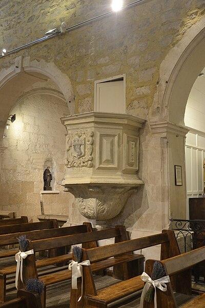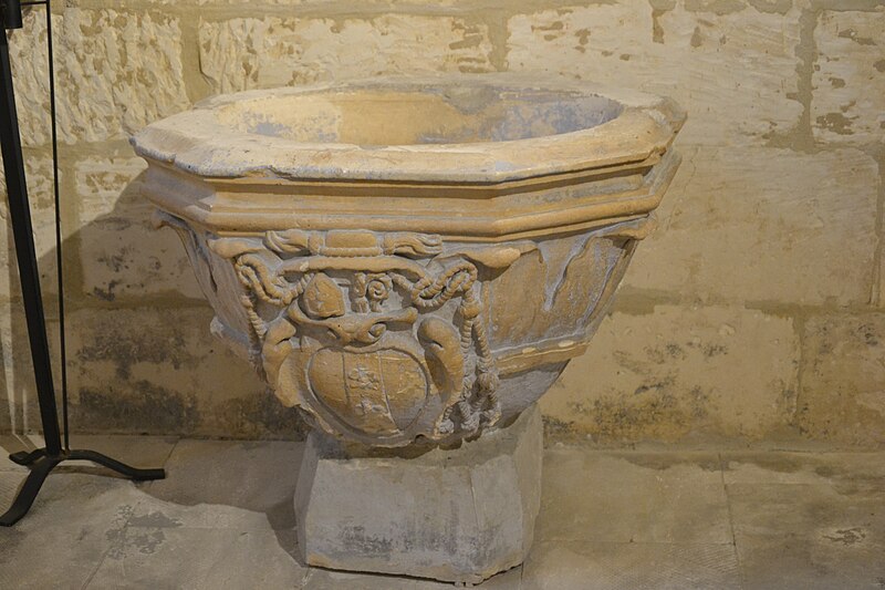 Évêque d'Orange et prieur de Velleron, blason sur les fonts baptismaux.