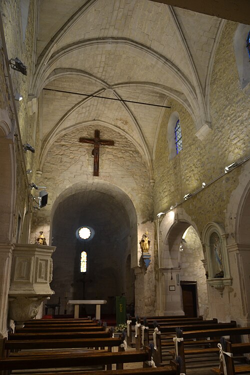 L'église paroissiale Saint-Michel, anciennement Notre‑Dame de Nazareth, est une église catholique située à Velleron (Vaucluse). À l'origine prieurale, elle dépendait de l'abbaye Saint‑Eusèbe de Saignon. L'édifice a connu plusieurs campagnes de construction et d'extension. La partie romane la plus ancienne remonte au XIIe siècle, notamment le chœur. La nef a été remaniée à l'époque moderne, tandis que la façade et le portail principal datent du XVIIe siècle. L'église comporte sept chapelles latérales édifiées à différentes époques, principalement aux XVe et XVIe siècles. Le chœur présente un dispositif de trompes basses permettant la transition du plan carré au plan semi‑circulaire. Les fonts baptismaux en pierre, datés du XVIIe siècle, portent le blason de Jean de Tulles, évêque d'Orange et prieur de Velleron. L'édifice a pris la dénomination de Saint‑Michel au XIXe siècle. Il est inscrit au titre des monuments historiques depuis le 11 mars 2004.