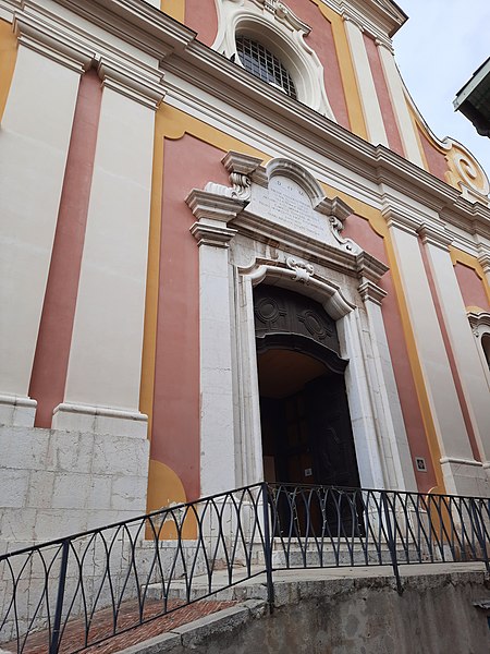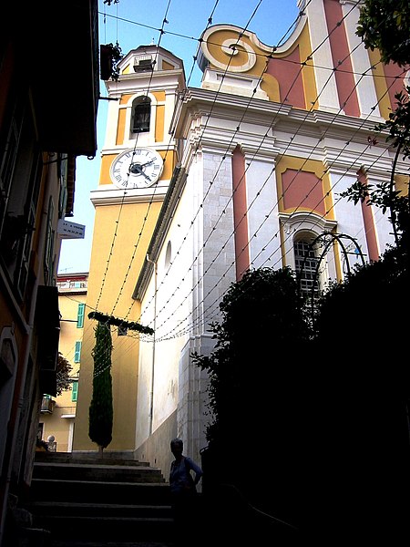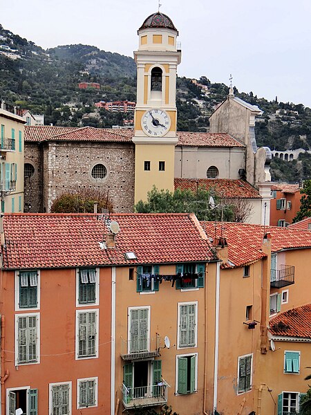 L'église paroissiale Saint-Michel se situe à Villefranche-sur-Mer, dans les Alpes-Maritimes, en région Provence-Alpes-Côte d'Azur, et est classée au titre des monuments historiques le 26 juin 1990. Un premier prieuré dépendant de l'abbaye de Saint-Pons est mentionné au XIIIe siècle. Après la fondation de Villefranche en 1295, Charles d'Anjou accepte en 1306 la demande des habitants de construire une église dédiée à saint Michel. Au XVIIIe siècle, le Conseil de ville décide de reconstruire l'édifice médiéval devenu vétuste ; l'évêque de Nice bénit la première pierre le 7 mars 1732. Le nom de l'architecte n'est pas connu, mais le style se rapproche de celui de l'architecte Borra et certains éléments de la façade évoquent des ouvrages de Devincenti. Le 3 juillet 1752, la construction avait atteint le niveau d'arasement des murs et l'on se préparait à monter la voûte ; l'église est achevée en 1757.