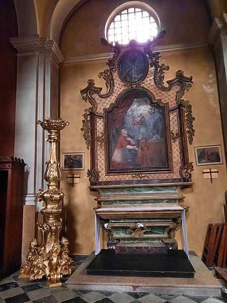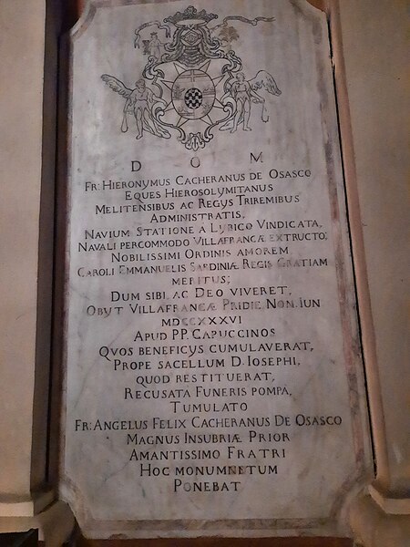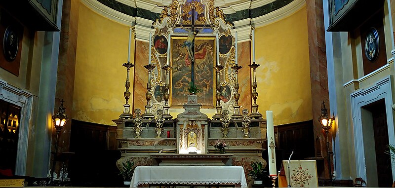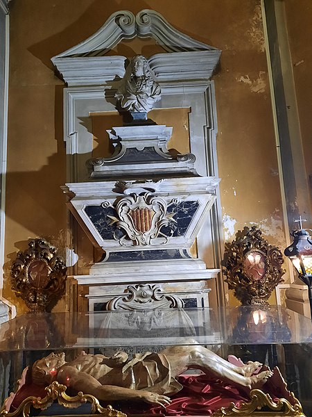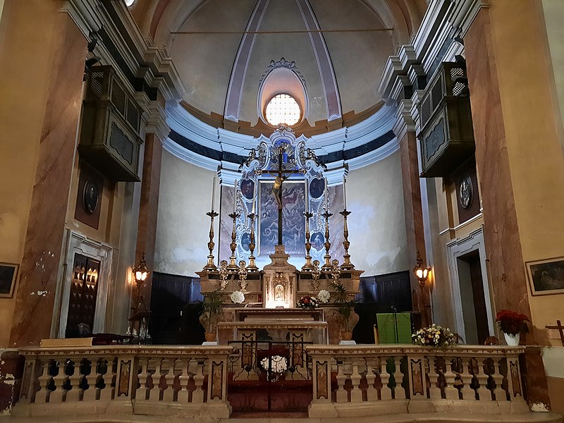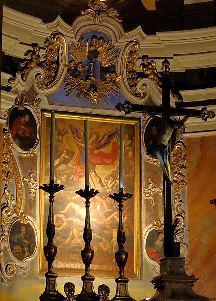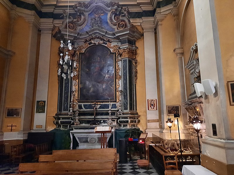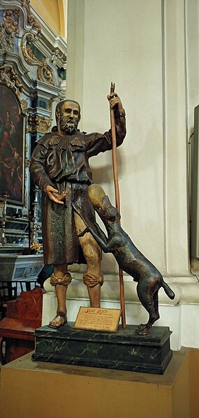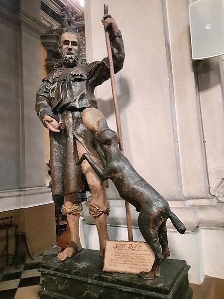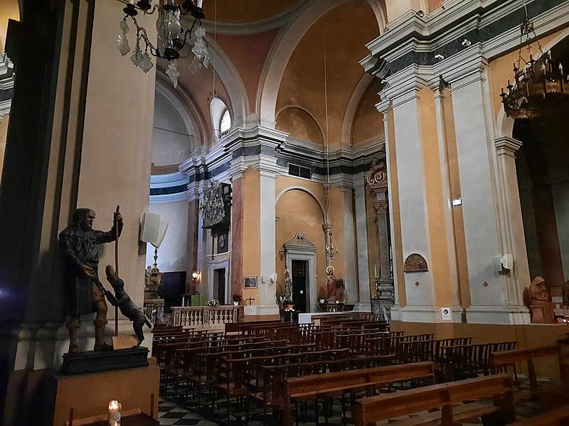 Le décor intérieur comprend plusieurs œuvres et objets d'art : le monument funéraire en marbre d'Octave Emmanuel Camparo de Cairo, chevalier de Malte, décédé en 1728 ; derrière le maître-autel, un ensemble de tableaux dans un encadrement baroque représentant, autour de saint Michel archange précipitant les damnés en Enfer, saint Charles Borromée en prière, saint Roch en méditation, la décollation de saint Hospice et sainte Élisabeth de Hongrie, ces peintures ayant été classées comme objets en 1984. D'autres tableaux — la Fuite en Égypte et l'Assomption de la Vierge — ont également été classés en 1984. L'église abrite une statue de saint Roch, représenté avec son bâton de pèlerin et figuré en ermite après avoir contracté la lèpre, nourri par un chien, ainsi qu'un christ gisant grandeur nature sculpté au XVIIe siècle par un galérien anonyme dans un seul bloc de bois de figuier. De nombreux autres objets ont été classés par le service des Monuments historiques.