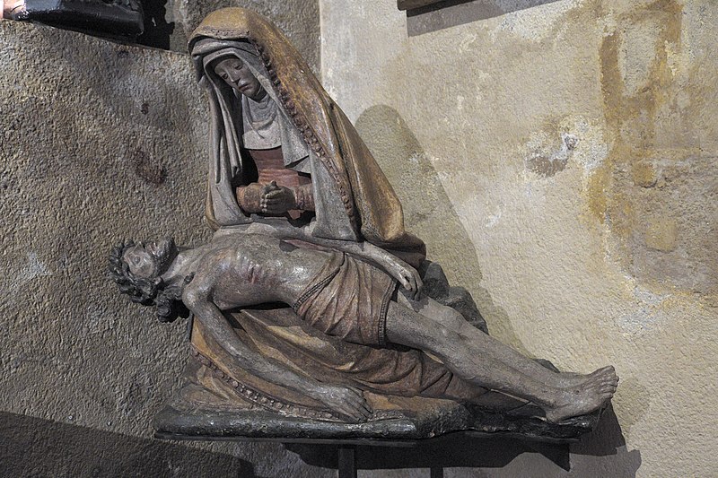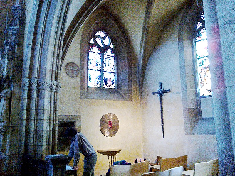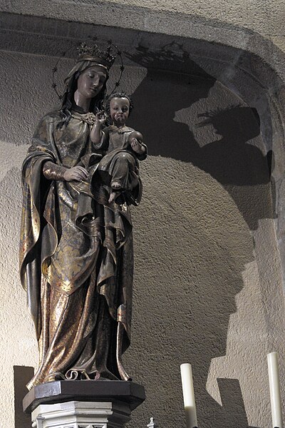 Le mobilier est riche : l'église conserve notamment deux piétàs et deux vitraux du XVe siècle, ces derniers illustrant les vies de saint Jean-Baptiste et de la Vierge, ainsi qu'une statue de sainte Valérie datée du XVe siècle.
