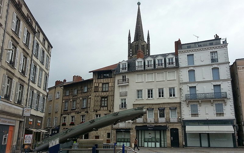 L'église, de style gothique, a été édifiée entre les XIVe et XVIe siècles et présente un clocher typique du Limousin, semblable à celui de la cathédrale Saint-Étienne, couronné d'une boule métallique singulière. En 1810, la foudre endommagea le clocher ; pour faciliter des opérations de triangulation et des mesures géodésiques, le responsable militaire proposa de le coiffer d'une sphère métallique d'environ deux mètres de diamètre et de 600 kg. Cette boule, qui donna son nom à un hôtel voisin, la Boule d'Or, offrait une grande prise au vent et menaça à nouveau la stabilité du clocher, provoquant un débat public et des divisions au sein de la Société archéologique et historique du Limousin. Le préfet sollicita l'avis du ministère des Beaux-Arts et une nouvelle sphère, ajourée et en cuivre, fut prévue ; la Première Guerre mondiale retardant les travaux, elle ne fut installée qu'après le conflit, alors que la girouette était elle en place depuis 1824.