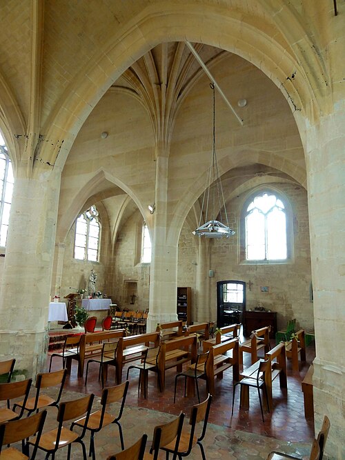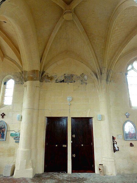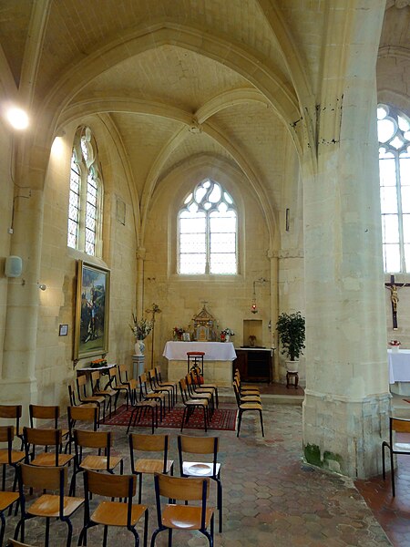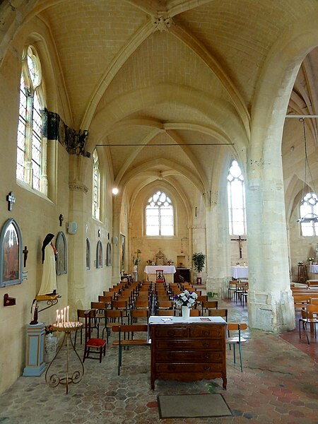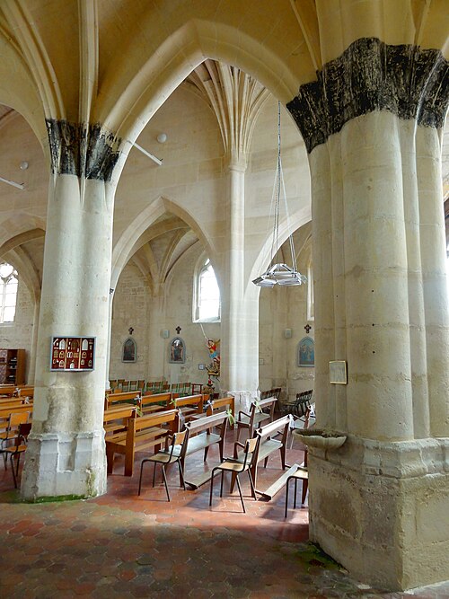 L'église Saint-Michel, située au Mesnil-en-Thelle (Oise), est une église paroissiale catholique essentiellement construite dans le style gothique flamboyant. C'est une église-halle à vaisseau central surhaussé, voûtée en pierre, organisée en un vaisseau central aveugle flanqué de deux bas-côtés et terminée par un chevet plat. Le plan présente des irrégularités qui témoignent de reconstructions successives et d'une reprise partielle d'un édifice médiéval antérieur. Les travées plus courtes de la nef évoquent le tracé d'une nef romane primitive et la travée abritant le porche latéral nord correspond probablement au transept primitif. Le grand chœur en forme d'halle, à chevet plat, appartient à une typologie du XIIIe siècle, tandis que divers fragments romans et gothiques subsistent, notamment un chapiteau réemployé et des colonnettes et ogives dans les bas-côtés. Après les destructions liées à la guerre de Cent Ans, l'édifice a été reconstruit à partir de 1500, avec la réédification des bas-côtés, des voûtes et d'un clocher latéral dont l'élévation supérieure est restée inachevée. La sacristie a été annexée à l'époque classique et les caractères stylistiques mêlant flamboyant et influences renaissantes traduisent des interruptions et des reprises successives du chantier. L'intérieur se distingue par des piliers ondulés, des grandes arcades en tiers-point et des voûtes à liernes et tiercerons, signes d'interventions étalées dans le temps. L'église a été gravement endommagée par des obus en juin 1940; des réparations et des reconstructions du XXe siècle ont été conduites au titre des dommages de guerre. Classée au titre des monuments historiques par arrêté du 28 juillet 1966, elle a bénéficié de restaurations ultérieures, le clocher ayant été en partie restauré en 2004, et se présente à ce jour dans un bon état d'entretien. L'édifice occupe le centre du village, rue de la Libération, avec le chevet donnant sur la rue; un parvis au nord, accessible depuis la même voie, constitue l'accès principal et un emplacement de stationnement. La façade occidentale et l'élévation méridionale ouvrent sur l'ancien cimetière transformé en espace vert, la visibilité du côté sud étant toutefois limitée par la faible largeur du terrain et une propriété privée attenante. Sous l'Ancien Régime la paroisse relevait du doyenné de Beaumont‑sur‑Oise et du diocèse de Beauvais; son patron est saint Michel. Aujourd'hui, Le Mesnil‑en‑Thelle est rattaché à la paroisse Saint‑Louis‑en‑Thelle, siégeant à Chambly; les messes dominicales sont concentrées dans deux des églises du groupement, les autres étant desservies environ une fois tous les deux mois par une messe anticipée le samedi soir.