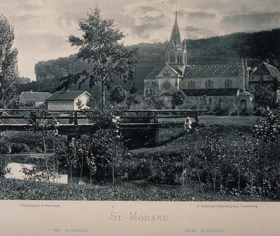 L’Hôpital Saint-Morand occupe l’emplacement de l’ancien prieuré clunisien fondé autour de 1105 par les comtes de Ferrette, à l’origine une église dédiée à saint-Christophe. Le prieuré prit rapidement le nom de Morand, moine envoyé par Cluny, qui y dirigea la communauté et mourut en 1115 ; sa tombe devint un lieu de pèlerinage et fit du sanctuaire un centre de dévotion et de donations. Au fil des siècles, le culte de saint Morand attira confréries, indulgences et mécènes, parmi lesquels des seigneurs locaux et des dynasties comme les Habsbourg, et certaines reliques circulèrent jusqu’à Vienne. La vie du prieuré fut marquée par des tensions avec les pouvoirs laïcs et ecclésiastiques, des difficultés financières et des périodes de déclin spirituel, ainsi que par des épisodes de violence et de destruction lors des guerres. Les Jésuites reçurent les bâtiments en 1621 ; après des dommages et des reconstructions au XVIIe siècle, l’essentiel du corps principal fut reconstruit au milieu du XVIIIe siècle d’après les plans de Johann Caspar Bagnato, et se distingue par un beau portail. Le site a ensuite connu des changements de main et, à la Révolution, le prieuré fut saisi comme bien national et morcelé, l’église et le cimetière restant propriété communale. La Ville d’Altkirch acquit l’ensemble au début du XIXe siècle et y installa son hôpital, ouvert en 1829, auquel furent rapidement adjoints un orphelinat et un asile pour vieillards. Les bâtiments ont été restructurés et agrandis à plusieurs reprises : élévation du fronton sud remplacée par un étage en attique, nouveaux corps ajoutés en 1934 et 1981, et constructions ou transformations annexes (orphelinat, maison de retraite, services administratifs). Il ne subsiste aucun vestige architectural médiéval apparent ; l’ancienne chapelle conventuelle, au premier étage, conserve toutefois son caractère et ses vitraux sont modernes. Le prieuré est implanté sur la plus ancienne agglomération d’Altkirch, sur une terrasse au‑dessus de l’Ill qui met les bâtiments hors d’eau. Une partie de l’ancien prieuré a été inscrite au titre des monuments historiques en 1937 et les éléments survivants sont aujourd’hui intégrés au Centre Hospitalier Saint-Morand.