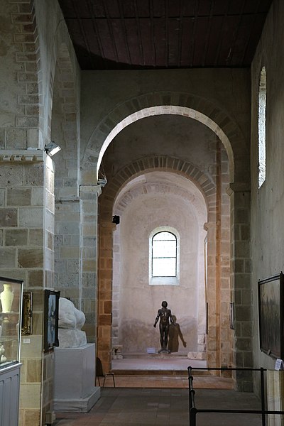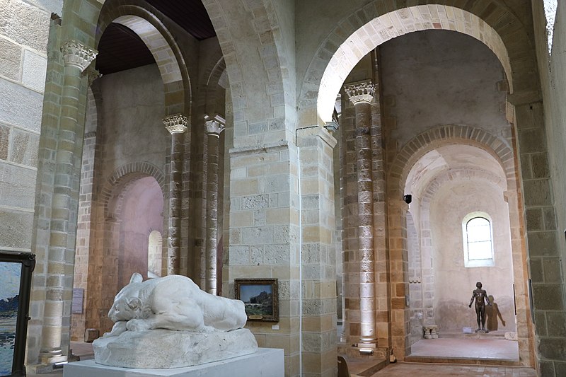 L’église Saint‑Nazaire est une église catholique de style roman, située à Bourbon‑Lancy, dans le département de Saône‑et‑Loire. Elle remonte au XIe siècle et dépendait d’un ancien prieuré donné à Cluny vers 1030 par Anséric de Bourbon. Les bâtiments conventuels ont été détruits pendant la Révolution. Menacée de démolition après une décision du conseil municipal en 1892, l’église a été sauvée grâce à l’intervention du sénateur Ferdinand Sarrien, qui obtint son classement au titre des monuments historiques en 1893 et y installa en 1897 le musée municipal Saint‑Nazaire consacré à l’archéologie et aux beaux‑arts. Extérieurement, l’édifice conserve une silhouette massive et trapue ; les bâtiments du prieuré se trouvaient au sud et ont disparu. Le portail de la façade ouest date du XVIIIe siècle et le clocher a été refait au XVIIe siècle. À l’intérieur, la nef lambrissée compte cinq travées flanquées de bas‑côtés ; le transept dépasse la nef et le chœur développé comprend des bas‑côtés, une abside et quatre absidioles orientées. L’église présente des éléments architecturaux et décoratifs notables, tels que la façade, la nef, des fresques murales et des chapiteaux.