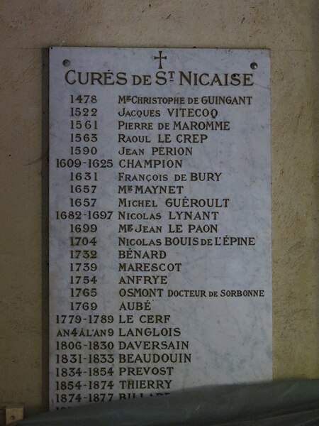 L’église Saint-Nicaise se situe dans les quartiers Saint-Marc, Croix-de-Pierre et Saint-Nicaise de Rouen. Fondée par saint Ouen en 640 comme chapelle hors les murs, elle abritait les reliques de saint Nicaise rapportées de Gasny. Sous Saint Louis, l’édifice est intégré à la ville et devient paroissial en 1388 ; le curé est alors nommé par l’abbé de Saint-Ouen. Un nouveau chœur est élevé entre 1538 et 1561 ; en 1560 l’église est pillée par des calvinistes. Réputée pour son orgue de tribune construit par Crépin Carlier en 1634, elle voit cet instrument restauré en 1927-1928 et inauguré le 24 octobre 1928 par Joseph Bonnet. À proximité se trouve le séminaire Saint-Nicaise.