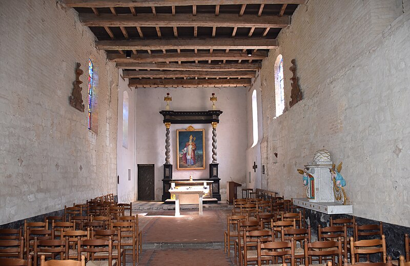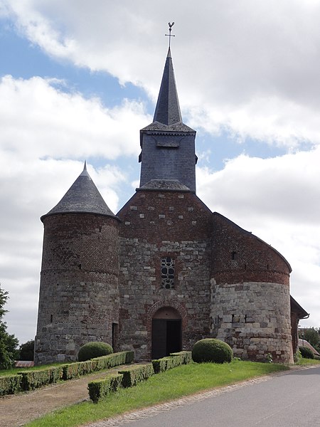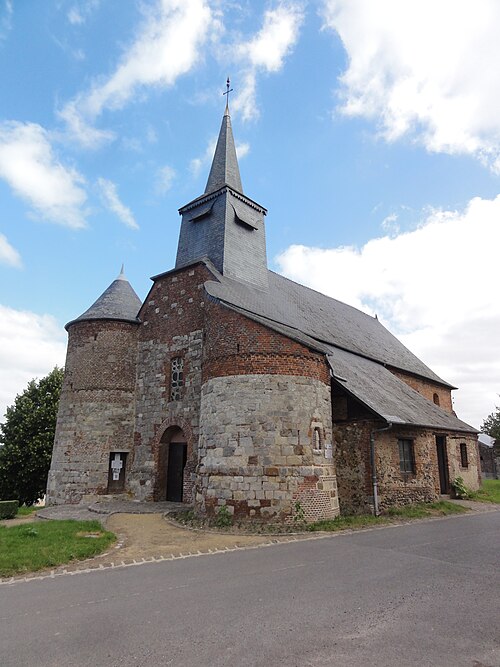 L'église Saint-Nicolas de Bancigny, située sur la commune de Bancigny dans le département de l'Aisne (Hauts-de-France), est une église fortifiée de dimensions modestes. Sa construction date du début du XVIIIe siècle ; l'édifice est bâti pour moitié en pierre blanche et pour moitié en brique. Le portail est encadré par deux tours rondes, courtes et massives, dont les soubassements sont en pierre ; ces tours de la façade ont été inscrites au titre des monuments historiques par arrêté du 11 mai 1932. Les parties supérieures des tourelles avaient été arasées vers 1900-1905, comme le montrent des cartes postales anciennes, et une pierre gravée rappelle le rehaussement de la tour nord en 1924. L'église conserve des fonts baptismaux en pierre du XIIe siècle et un groupe sculpté formant calvaire en bois polychrome du XVIe siècle. Une campagne de restauration a eu lieu en 1992 et des vitraux de Jeroen Dykhuizen y ont été posés la même année. La tour sud présente quatre meurtrières et une porte donnant accès à la pièce des gardes, témoignant de la vocation défensive de l'édifice. La nef côté chœur, la cuve baptismale et une Vierge à l'Enfant figurent parmi les éléments intérieurs remarquables. L'édifice est documenté par un dessin de 1875 d'Amédée ïéette, une carte postale vers 1910 montrant les tours tronquées et une photo de 2022.