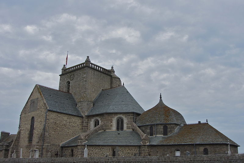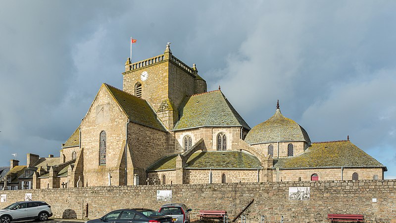 L’édifice a connu de nombreuses destructions : pillages et incendie en 1346 lors de la guerre de Cent Ans, puis nouvelles dévastations aux guerres de Religion, si bien que les offices furent tenus jusque vers 1599 dans la chapelle Saint‑Côme du couvent des Augustins. Après la construction d’un fort en 1592, démantelé quelques années plus tard, la reconstruction paroissiale fut décidée vers 1626 et conduite par étapes entre 1629 et 1695, sans parvenir alors à l’achèvement complet. Le chœur, commencé en 1637 par le curé Thomas Guiffard grâce aux matériaux du fort et aux libéralités de l’abbé du Vœu et de François de Matignon, devint la première partie achevée ; en 1649 furent élevées les piles de la tour et le mur du transept, et le clocher et le transept furent achevés en 1695. Faute de ressources la nef resta longtemps inachevée et l’arc triomphal fut obturé.