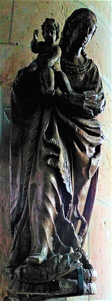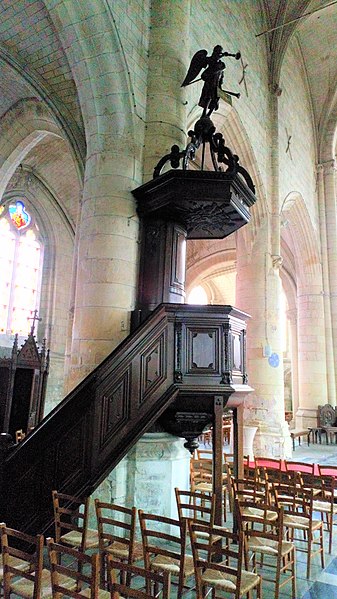 L'intérieur conserve plusieurs œuvres et éléments de mobilier classés au titre d'objets des monuments historiques : une Vierge à l'Enfant en bois haute de 1,17 m, des tableaux dont un Reniement de saint Pierre peint à l'huile (2,80 m × 1,35 m), une chaire à prêcher en bois datée de 1756, un confessionnal du XVIIIe siècle et un orgue de tribune du XVIIIe siècle dont la partie instrumentale n'est plus visible. On note également un bas-relief représentant une salamandre, emblème du roi François Ier.