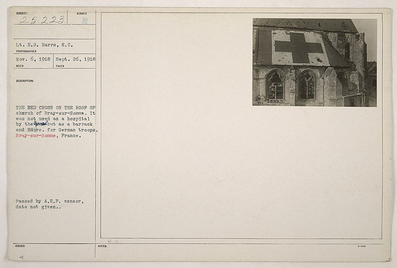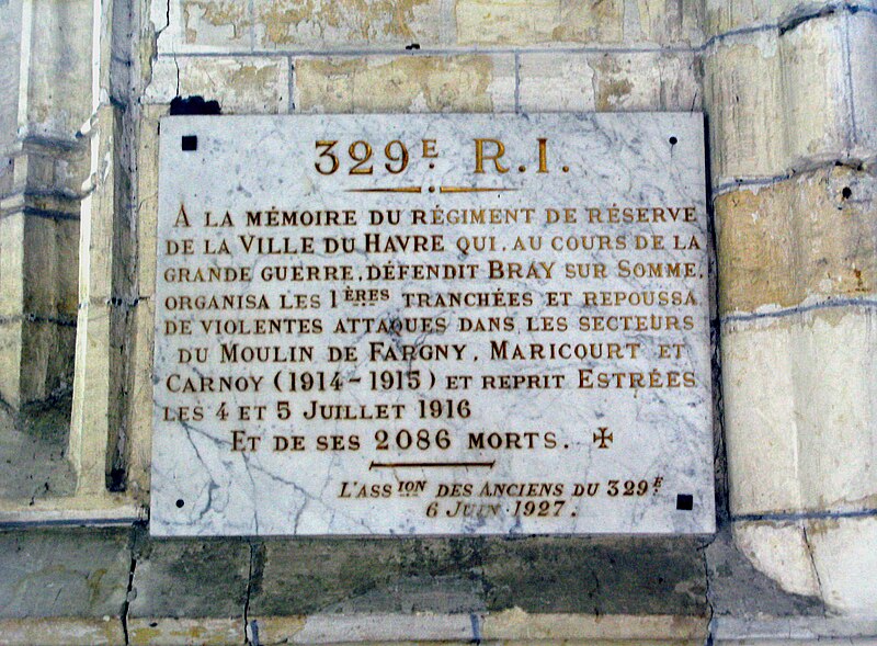 Des obus allemands détruisirent la tour du clocher et les vitraux pendant la Première Guerre mondiale.