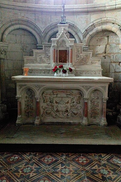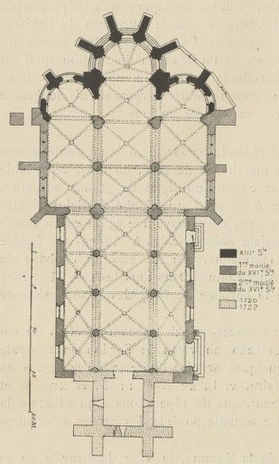 Édification de l'église sur les ruines d'un ancien monastère, période de transition entre le roman et le gothique.