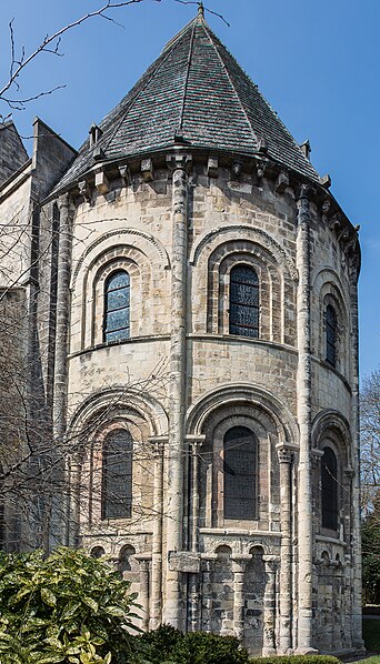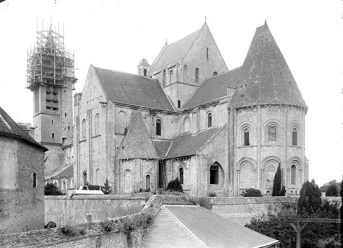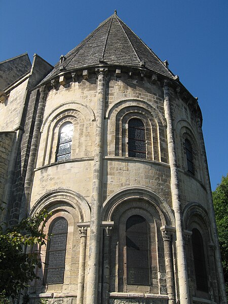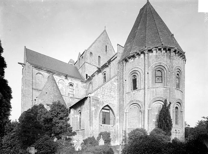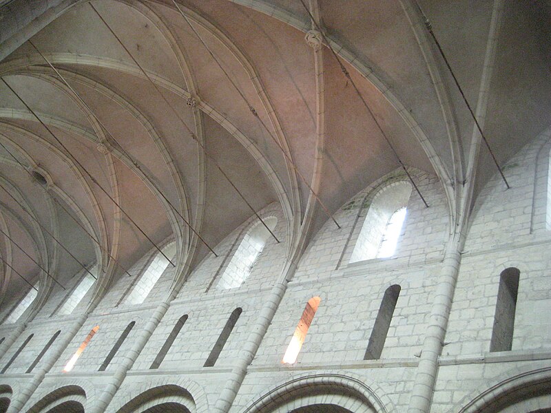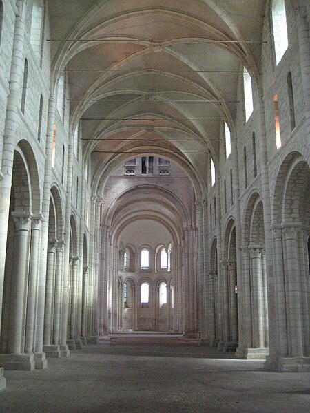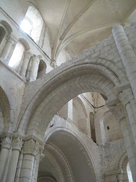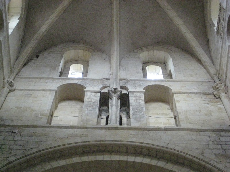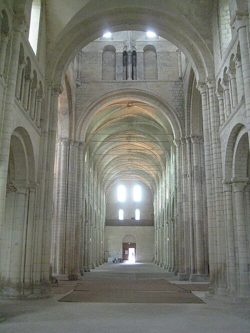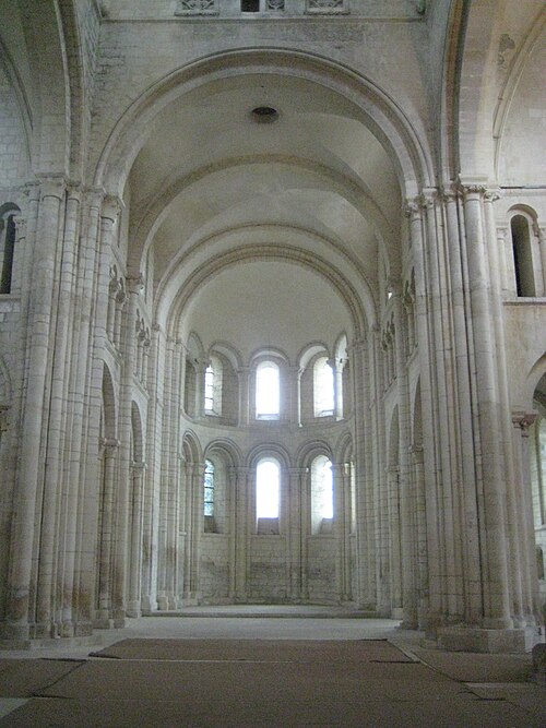 L'édifice s'inspire de la tradition monastique bénédictine normande, à l'instar des abbatiales de Cerisy ou de Boscherville, et présente une façade harmonieuse mais inachevée, le narthex roman s'ouvrant sur l'extérieur. La nef comporte sept travées et les élévations latérales sont à trois niveaux : de grandes arcades moulurées apparaissent seulement sur les trois dernières travées et retombent sur des piles cruciformes aux chapiteaux très simples. Le niveau intermédiaire présente deux meurtrières non moulurées ouvrant sur les combles des bas‑côtés, l'étage supérieur est percé d'une grande fenêtre sans ornement, et la croisée du transept est surmontée d'une tour‑lanterne. Les bras du transept sont dotés d'absidioles — cinq arcatures au nord et trois au sud — et la présence d'une tribune rappelle l'abbaye aux Hommes. L'élévation du chœur est plus décorée au niveau intermédiaire, avec quatre étroites baies inscrites dans de courtes arcatures en plein cintre, tandis que l'élévation extérieure conserve un dépouillement marqué, avec des fenêtres non moulurées dans de grands arcs en plein cintre. Le chœur se distingue par deux arcatures plaquées par travée, des baies à voussures moulurées, un cordon de billettes au niveau des archivoltes du second étage, une corniche à modillons et de hautes demi‑colonnes. Le voûtement du chœur est présenté comme très novateur, premier exemple normand de chœur voûté d'arêtes comportant un doubleau entre les arêtes.