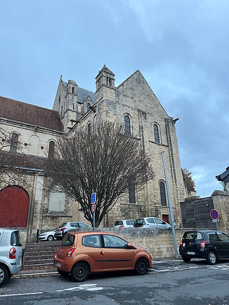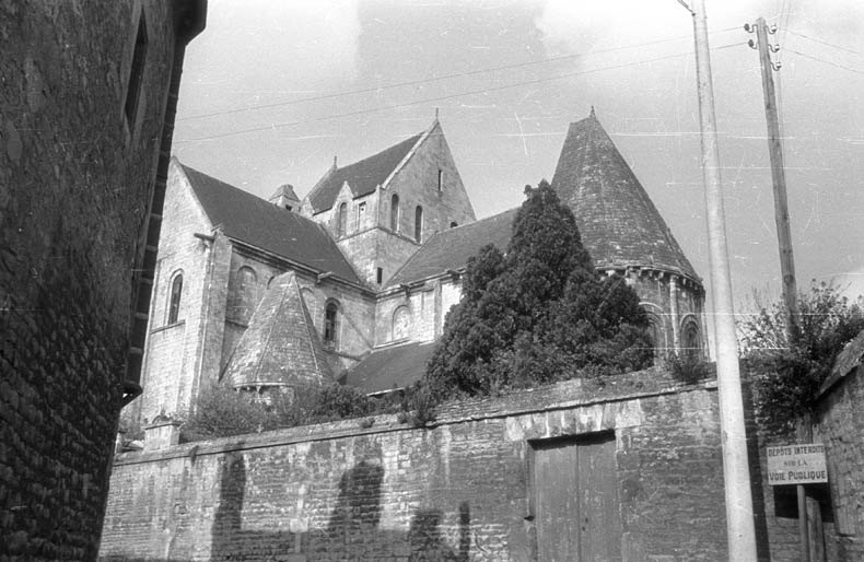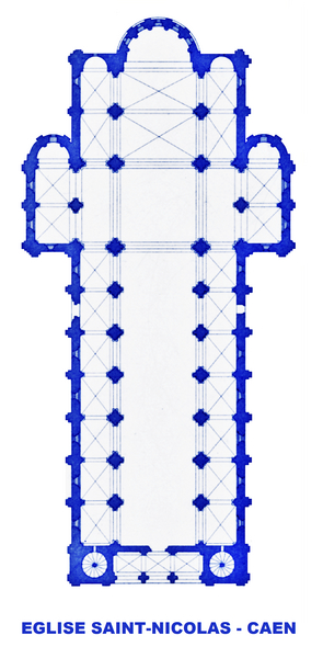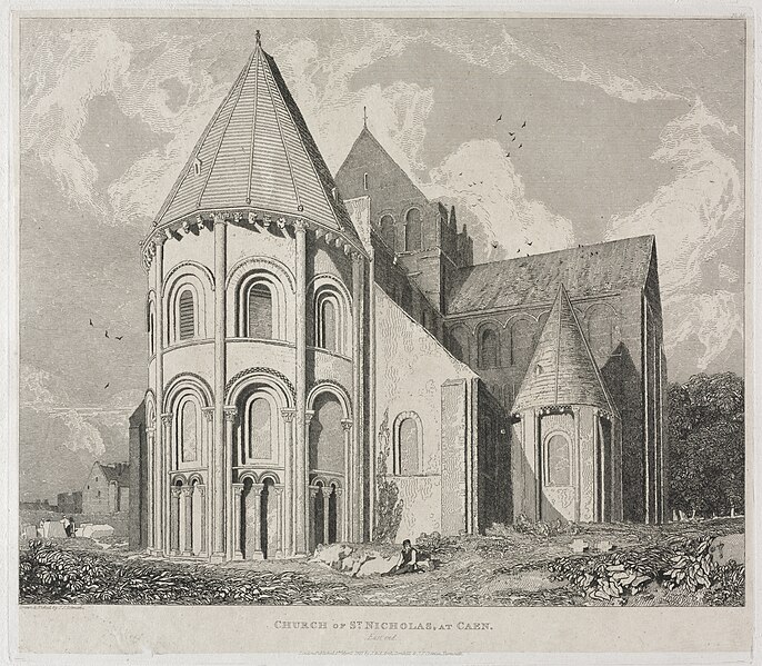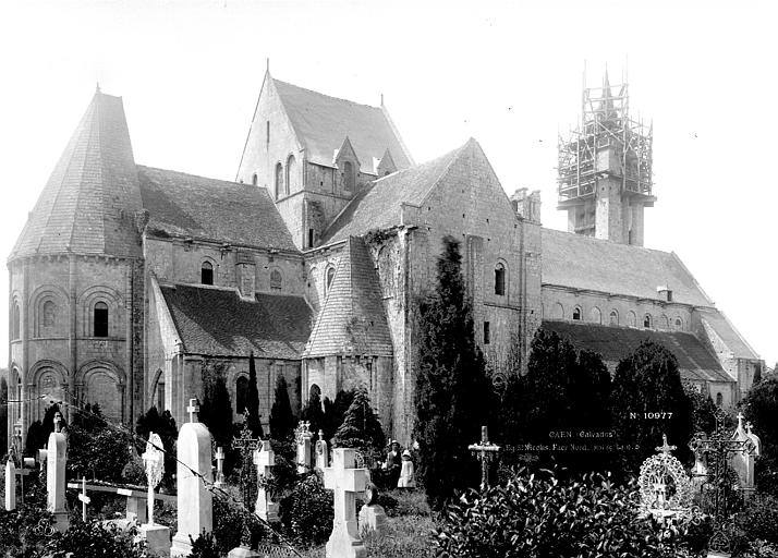 L'ancienne église Saint‑Nicolas, de style roman, est mentionnée pour la première fois en 1083 et a été fondée au XIe siècle dans le Bourg‑l'Abbé de Caen (Calvados). Elle est classée au titre des monuments historiques depuis le 20 août 1913 et son cimetière est classé depuis 1939. Pour accompagner l'essor urbain lié à Guillaume le Conquérant, l'abbaye aux Hommes favorisait une extension de la ville qui créa de nouveaux bourgs à l'est et à l'ouest; les églises Saint‑Nicolas et Saint‑Ouen devaient y jouer un rôle central mais n'ont connu qu'un succès limité. Les terrains du Bourg‑l'Abbé appartenaient à la cathédrale de Bayeux et furent cédés à la reine Mathilde, plaçant les moines de l'abbaye aux Hommes sous la dépendance spirituelle de l'abbesse de Caen ; pour échapper à cette dépendance ils firent édifier Saint‑Nicolas. La charte de Guillaume de 1083 mentionne 72 maisons dans le Bourg‑l'Abbé qui restèrent dans leur ancienne paroisse, à l'exception de cinq maisons construites pendant le litige et qui formèrent le noyau de la paroisse dite « des champs ». Achevée en 1093, l'église demeura sous le patronage des moines jusqu'à la Révolution ; l'abbé conserva les droits honorifiques tandis que les fonctions curiales étaient assurées par un vicaire perpétuel. La paroisse faisait partie du doyenné de Caen dans le diocèse de Bayeux. La paroisse fut supprimée en 1792 ; à partir de 1793 l'édifice cessa d'être utilisé pour le culte catholique et servit successivement de fabrique de balles en plomb, d'écurie pour la cavalerie, de dépôt de remonte et, jusqu'en 1931, de dépôt de fourrage, un plancher ayant été installé pour diviser le chœur et le transept nord en deux niveaux. L'église abritait trois confréries — de charité, du Saint‑Sacrement et des Filles vertueuses de la Vierge — et plusieurs chapelles dédiées à la Sainte‑Vierge, au Saint‑Sacrement, aux Saints‑Anges‑Gardiens, à la Sainte‑Croix, à Saint‑Marcouf, à Sainte‑Catherine, à Saint‑Jean‑Baptiste et à Sainte‑Cécile.