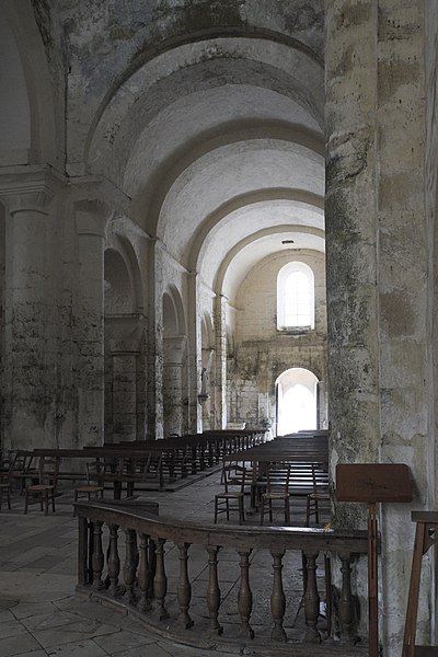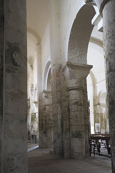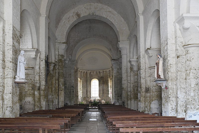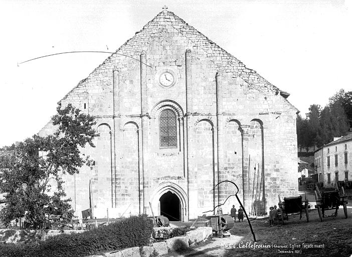 L'église Saint-Nicolas est l'ancienne abbatiale Saint-Pierre de Cellefrouin, située à Cellefrouin en Charente. L'abbaye de chanoines réguliers de saint Augustin a été fondée au tout début du XIe siècle, mais le nom de son fondateur reste controversé ; certains attribuent la fondation vers 1025 à Arnauld de Vitabre, aidé de plusieurs habitants, dont un nommé Frouin qui aurait donné son nom au monastère. Divers actes anciens attestent son existence et plusieurs donations, parmi lesquelles des dispenses et des cessions d'églises réalisées par des seigneurs et évêques. Une bulle du pape Pascal II du 24 novembre 1101 rattache Cellefrouin à l'abbaye de Charroux, mais d'autres sources indiquent qu'elle reprit ensuite son autonomie sous la règle de saint Augustin. D'autres textes mentionnent qu'autour de 1096 le pape Urbain II imposa la règle bénédictine aux religieux de Cellefrouin ; l'abbé Foucault s'y opposa et devint ermite à Fons Cancellatus, acte lié à la fondation de l'abbaye Notre-Dame de Chancelade. Malgré des dons, notamment de membres de la famille Taillefer, l'abbaye ne connut pas une grande importance. Elle subit de graves dommages pendant les guerres de Religion au XVIe siècle, qui entraînèrent la destruction du monastère et la dispersion des religieux dans des maisons particulières ; ils ne purent ensuite reprendre la vie conventuelle. En 1630, le monastère ne comptait plus que six religieux, dont seulement quatre résidaient sur place. De l'ensemble monastique il ne subsiste que l'église abbatiale romane, magnifiquement restaurée et classée Monument historique depuis 1907. Édifice de transition entre le XIe et le XIIe siècle, l'église présente une nef voûtée en berceau, un transept surmonté d'une coupole octogonale coiffée d'un clocher carré, et une abside flanquée de deux absidioles. Sa façade occidentale, datée de 1060, et sa voûte du XIe siècle font de cette façade la plus ancienne de l'Angoumois. La façade et le chevet forment un rectangle, et les sculptures murales, parmi lesquelles un bas-relief Agnus Dei sur le chevet, soulignent le caractère artistique de l'édifice. Les bâtiments monastiques ont disparu.