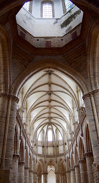 L'église Saint‑Nicolas, consacrée au culte catholique, se situe à Coutances, dans le département de la Manche en Normandie. Elle a été fondée par le chapitre sous l'épiscopat d'Hugues de Morville, c'est‑à‑dire avant 1238, pour remplacer l'ancienne chapelle Saint‑Nicolas de la cathédrale, démolie lors de l'agrandissement de l'abside gothique ; le refus des paroissiens de recevoir les sacrements dans la nouvelle église provoqua un conflit réglé par arbitrage en 1241. Malgré les indulgences accordées par le pape Urbain V en 1363, l'édifice était en ruine à la fin du XIVe siècle et ses voûtes s'étaient effondrées. Le curé Thomas du Marest rapporte les donations et les travaux réalisés de 1411 à 1430 pour réparer l'église et le presbytère, fortement endommagés lors d'un siège en 1354 ou 1356 pendant la guerre de Cent Ans. Ces réparations, engagées sur dix‑huit ans, comprirent la refonte de la charpente par Robert Tostain en 1412, la réfection de la toiture en 1413, la reconstruction de plusieurs piliers par Jean et Perrin Mauger en 1414, et l'adjudication des travaux du clocher‑porche à Guillaume Behuchet et Richard Colibert le 21 mai 1416 ; en 1421 il fallut encore refaire la couverture du chœur endommagée lors du siège de 1418. Selon Eugène Lefèvre‑Pontalis, les parties hautes des cinq travées de la nef, le transept et le chœur avec déambulatoire remontent au XIVe siècle. À la fin du XVIe siècle, des reprises en sous‑œuvre ont été effectuées : le maître maçon a conservé une pile du XIVe siècle près de la façade et a remonté les piles rondes de la nef sur d'anciennes bases, et les travaux ne furent achevés qu'en 1614. Les fenêtres hautes en tiers‑point et les formerets primitifs sont demeurés intacts, tandis que les voûtes d'ogives et la balustrade ont été refaites à l'époque moderne ; la lanterne octogone et la coupole en bois sur la croisée du transept datent du XVIIe siècle, les croisillons ayant reçu leurs voûtes d'ogives en 1665. Les voûtes du déambulatoire ont été refaites entre 1620 et 1622 par le maître maçon Jacques Le Baron, et les voûtes d'ogives du chœur sont d'une date plus récente. Très endommagée en 1944, l'église a été restaurée par la suite. Bien qu'elle ait été employée pour des expositions et des marchés artisanaux et qu'elle n'ait pas servi régulièrement aux cérémonies cultuelles, sa désaffectation a été autorisée en janvier 2019. L'église Saint‑Nicolas est classée au titre des monuments historiques par arrêté du 11 juin 1946.