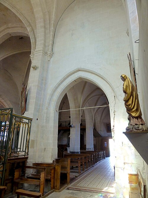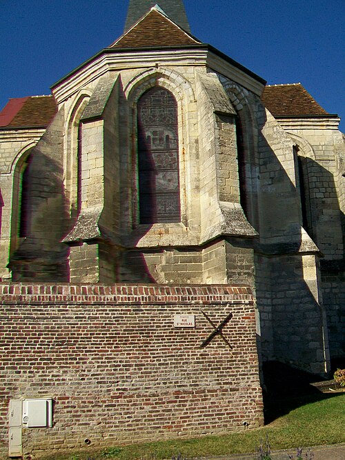 L'église Saint-Nicolas est une église catholique paroissiale située à Jonquières, dans l'Oise, dans la vallée de l'Oise, non loin de Compiègne, rue de l'Archerie (RD 10). Construite entre la fin du XIIe et le début du XIIIe siècle, elle a été largement reconstruite après la Guerre de Cent Ans au premier quart du XVIe siècle et consacrée de nouveau le 27 janvier 1522. L'extérieur relève principalement du gothique tandis que l'intérieur mêle le gothique flamboyant à des éléments plus simples : la nef et les bas‑côtés conservent un caractère rustique, alors que la voûte de la croisée du transept et les clés de voûte du transept et de l'abside sont plus soignées. L'édifice, de plan cruciforme, comprend une nef de trois travées accompagnée de bas‑côtés, un transept légèrement débordant et une abside à pans coupés ; au-dessus de la croisée s'élève une flèche de charpente couverte d'ardoise plutôt qu'un clocher massif. Les parements orientaux sont en pierre de taille et les parties occidentales comportent des moellons ; le chevet est bordé par le cimetière et l'église se présente dégagée, visible de tous les côtés. Les travaux du début du XVIe siècle ont repris les contreforts et l'abside, revoûté la croisée, remanié les grandes arcades et agrandi les fenêtres des bas‑côtés. Au XVIIIe siècle le portail occidental fut réparé ; après une longue période d'abandon au début du XIXe siècle, des restaurations importantes ont été engagées. Privée de curé entre 1807 et 1834, l'église fut prise en charge par l'abbé Théodore‑Cyrille Deligny qui, installé en 1834, releva le maître‑autel, remplaça provisoirement les voûtes dégradées par des plafonds plats faute de moyens et réalisa lui‑même des vitraux entre 1849 et 1859. Autodidacte, Deligny exécuta seize verrières polychromes figurées dont le dessin est obtenu par l'assemblage de fragments de verre coloré sans recours à la peinture sur verre ; son style, influencé par le vitrail du XIIIe siècle et très personnel, a été considéré comme un précurseur de l'Art nouveau. Les chefs‑d'œuvre de cet ensemble sont le vitrail du Rosaire, au nord du transept, et le vitrail des Apôtres, au sud ; d'autres verrières illustrent essentiellement des épisodes de l'Ancien Testament ou des thèmes liturgiques et symboliques. Le 23 juin 1878, un coup de foudre détruisit la flèche octogonale ; les réparations effectuées en 1879–1880 remplacèrent les plafonds plats par de fausses voûtes en briques creuses, consolidèrent la croisée et substituèrent à l'ancienne flèche une pyramide sur plan carré. L'église a été classée au titre des monuments historiques le 2 février 1920 et se présente aujourd'hui en bon état ; les vitraux ont fait l'objet de restaurations à partir des années 1950 et la flèche a de nouveau été consolidée au début du XXIe siècle. Intérieurement, la nef barlongue présente un niveau d'arcades et un mur haut aveugle ; la lumière pénètre principalement par la grande fenêtre occidentale en plein cintre, attribuée à la fin du XIIe siècle, ainsi que par les baies des bas‑côtés et de l'abside. Les grandes arcades, de profil simple, retombent sur des piliers octogonaux dépourvus de chapiteaux élaborés ; les voûtes visibles datent surtout du XIXe siècle et s'appuient sur des culs‑de‑lampe sculptés ou moulurés. Le carré du transept associe vestiges du début du XIIIe siècle et réfections du début du XVIe siècle : doubleaux chanfreinés, ogives au profil prismatique et clés de voûte aux découpages flamboyants autour de petits écussons. Les croisillons, de même hauteur que la nef, offrent au nord une baie en arc brisé et, au sud, un triplet dont certaines lancettes sont bouchées ; la sacristie s'ouvre sous la baie médiane du bras sud. L'abside, percée de larges baies en tiers‑point sans remplage prenant appui sur un long glacis, conserve une piscine liturgique au sud, une niche en anse de panier et une clé de voûte flamboyante refaite, ornée d'accolades et d'ornements. La façade occidentale, divisée par des contreforts, présente un portail en anse de panier sobre et une fenêtre haute de la fin du XIIe siècle, tandis que les bas‑côtés restent peu décorés. Le mobilier est majoritairement du XIXe siècle ; parmi les pièces anciennes, une stalle avec miséricorde inscrite aux monuments historiques en 1970 est conservée dans les stalles du transept et pourrait provenir du prieuré de Boucquy. Les retables des croisillons, les grilles de chœur et l'ancien maître‑autel reflètent les influences néogothiques et baroques du XIXe siècle. Les vitraux de l'abbé Deligny constituent la principale valeur artistique de l'église par l'éclat des couleurs, la stylisation des motifs et le caractère ornemental de l'ensemble, unique dans la région où Deligny a également œuvré à Canly, Remy et Bouillancy. L'église Saint‑Nicolas dépend aujourd'hui de la paroisse des Seize bienheureuses Carmélites de Compiègne.
