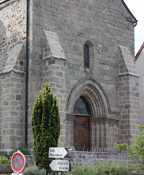 L'église Saint-Nicolas relevait du patronage de l'abbaye de Chambon. De l'ancienne église, seul le portail subsiste ; l'édifice actuel a été reconstruit au début du XXe siècle. L'ancienne construction se terminait par une abside circulaire, dont il ne reste que quelques modillons sculptés et un vestige de réseau flamboyant. Le portail comporte quatre voussures dont les arêtes sont moulurées en tore. Les ressauts de l'arc sont garnis de boudins qui, par l'intermédiaire d'une frise-chapiteau, retombaient sur des colonnettes aujourd'hui disparues. L'arc, en tracé brisé, est surmonté, à l'archivolte, d'un cordon mouluré formant larmier et faisant retour sur la façade. Le tailloir qui surmonte le chapiteau-frise, à gauche de l'entrée, est orné d'un motif à entrelacs.