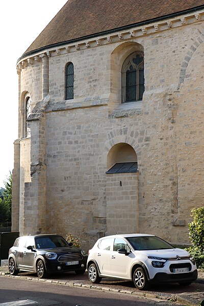 L’église Saint-Nicolas, située à Maule dans les Yvelines, est un édifice de tradition normande mêlant les styles roman et gothique, dont l’origine remonte au XIe siècle ; elle est classée monument historique par arrêté du 19 mars 1883. Le site occupait, durant l’Antiquité, un lieu de culte dédié à Jupiter. La première église connue de Maule date des XIe–XIIe siècles et, en 1076, Pierre de Maule en fit don aux moines bénédictins de Saint-Evroult. Au XIIIe siècle fut édifiée la salle basse, et au XVe siècle le bâtiment du prieuré auquel l’église est adossée est en grande partie conservé. Entre 1528 et 1547, l’édifice fut pourvu d’une tour de style Renaissance, puis il a fait l’objet de restaurations au XIXe siècle. Le prieuré abrite depuis 1938 le musée Victor Aubert, créé dans l’ancien ensemble conventuel, et l’espace culturel du prieuré, ouvert en 1997, a été renommé Espace culturel Marcel Tréboit en 2013. Architecturalement, l’église combine éléments romans et gothiques selon une influence normande ; sa crypte romane, à double accès, est l’une des plus grandes des Yvelines et repose sur des colonnes aux chapiteaux godronnés. Le prieuré Notre‑Dame, ensemble du XVe siècle adossé à l’église, entoure une cour carrée ornée d’un bosquet et d’amas de buissons aménagés à la Renaissance ; l’historien Ordéric Vital y séjourna en 1106. Le musée Victor Aubert, fondé en 1938 par l’archéologue maulois Victor Aubert (1874‑1948), présente des vestiges antiques et féodaux de la vallée de la Mauldre ainsi que des œuvres des arts et traditions populaires ; ses collections sont réparties entre un premier étage dédié à la paléontologie, à la Préhistoire, à l’époque gallo‑romaine et au Moyen Âge, et un rez‑de‑chaussée consacré aux arts populaires et à l’époque contemporaine. Le prieuré accueille également la bibliothèque municipale de Maule et deux salles d’exposition temporaires. La confrérie de Saint‑Sébastien, active sous l’Ancien Régime, rassemblait des habitants de Maule de tous métiers et célébrait la fête du village le 20 janvier ; les procès‑verbaux de cette confrérie sont conservés depuis 1667 jusqu’au dernier document daté de 1795. La bibliographie rassemble des monographies, articles et guides, notamment des travaux de Pierre Coquelle, Pierre Thibout et Jacques Thomazi ainsi que plusieurs publications et guides édités par l’ACIME. Des ressources et notices nationales et départementales (Mérimée, Base Mémoire, fonds photographique des Archives départementales des Yvelines) complètent la documentation disponible sur l’église et le prieuré.
