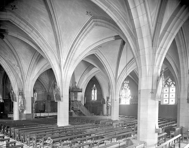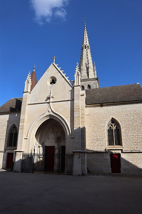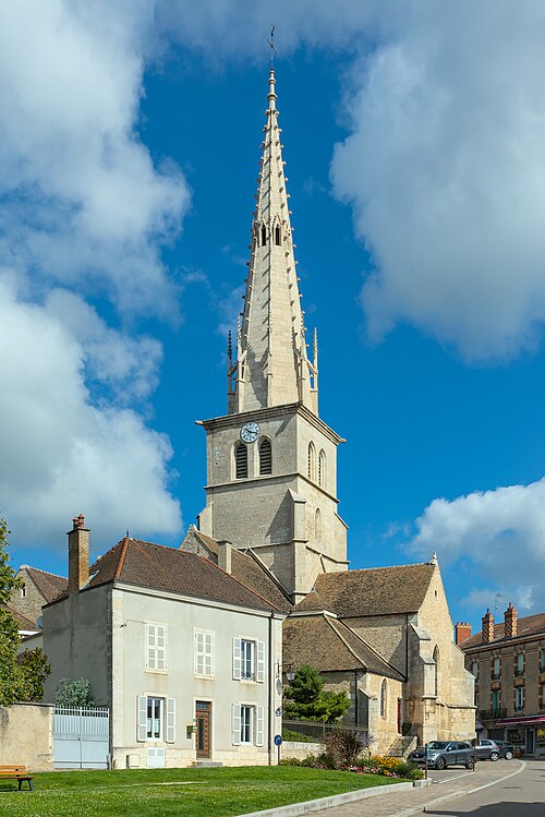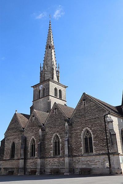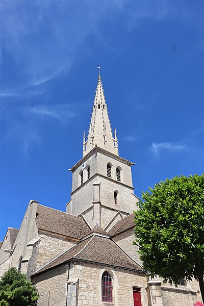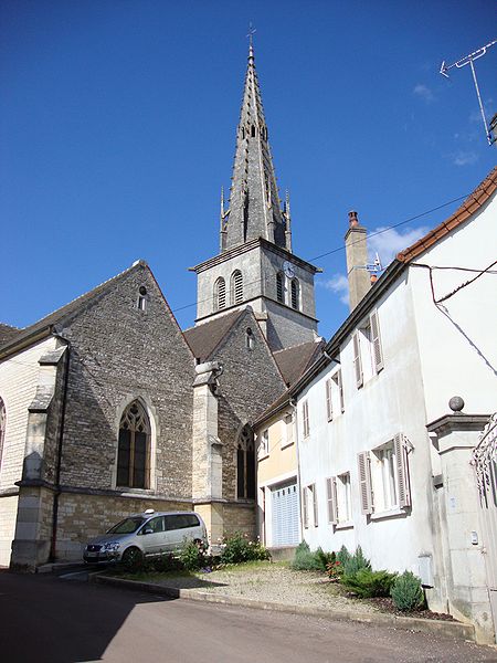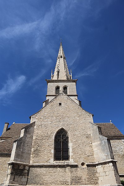 L'église Saint-Nicolas de Meursault, dédiée à saint Nicolas, mêle des éléments romans et gothiques et est classée au titre des Monuments historiques depuis 1846. Sur ce même emplacement se sont succédé plusieurs chapelles ou églises romanes à nef unique, la première ayant été transformée en chapelle castrale lors de son rattachement au domaine seigneurial. En 1094, Frogier de Meursault la donna aux abbés de Cluny. L'édifice primitif, situé à l'intérieur de l'enceinte du château, fut détruit puis rebâti aux XIIe et XIIIe siècles. L'église fut intégrée à l'enceinte du château fort de Meursault daté de 1337, enceinte qui a été remaniée et est devenue depuis l'hôtel de ville avec son toit en tuiles vernissées de Bourgogne. En 1470, Jean de Poitiers, seigneur de Meursault, fit édifier le chœur et le clocher. Vers 1480 un incendie provoqua une nouvelle reconstruction entreprise par les abbés de Cluny, qui utilisèrent des pierres extraites de la Perrière-Piade et élevèrent une flèche octogonale ; les travaux furent confiés aux trois frères Jeannin. L'ouvrage comprenait le chœur, le transept, une flèche octogonale en pierre de 57 mètres ornée de crochets et de petits arcs-boutants relevés en pinacles, ainsi qu'un clocher en pierre d'environ 1 200 tonnes, qui abrite aujourd'hui trois cloches. De 1792 à 1800, l'église Saint-Nicolas fut utilisée comme "Temple de la Raison" pour des réunions profanes ; le culte y fut rétabli en 1800 et, en 1803, Meursault devint chef-lieu d'un doyenné de seize paroisses. En 1843 la nef fut agrandie par l'ajout de deux collatéraux, donnant à l'édifice la forme d'une basilique. Un orgue de marque Mutin & Cavaillé-Coll y a été installé en 1927. Des travaux de restauration ont été menés en 1989, notamment sur les piliers du transept, et le coq girouette a été remplacé. L'église présente extérieurement des éléments remarquables tels que la flèche et le portail, héritage de ses phases de construction successives.