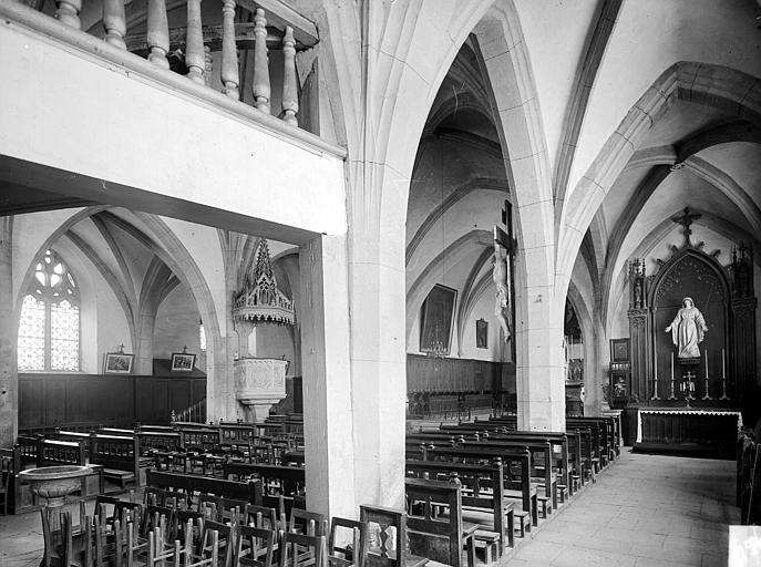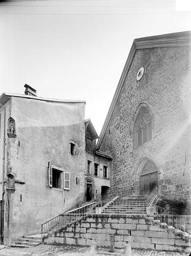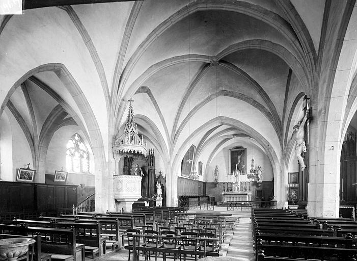 L'église Saint-Nicolas a été reconstruite au XVe siècle, probablement en deux campagnes, sous l'influence de l'abbatiale Saint-Claude. Un grand escalier conduit au parvis, devant le portail occidental de style flamboyant. La nef, au plan presque carré, est couverte d'une voûte d'ogives soutenue par des doubleaux et des formerets qui pénètrent les supports sans chapiteaux. Le chœur, à chevet plat, est lui aussi voûté d'ogives sur culots. Sept fenêtres présentent des remplages flamboyants.