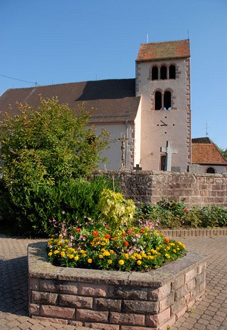 L'église Saint-Nicolas à Neuve-Église (Bas-Rhin) est inscrite au titre des monuments historiques depuis 2002. De l'époque médiévale subsiste principalement le clocher en bâtière, et l'ancienne tour-choeur, qui paraît dater du XIIIe siècle. La nef et la sacristie ont été reconstruites en 1735 à l'initiative du curé François-Étienne Delpy, comme l'atteste l'inscription « 17 DELPY 35 » gravée sur une pierre du gouttereau nord ; Delpy fit également rehausser la tour-choeur et la majeure partie du mobilier cultuel remonte à cette campagne de travaux, de même que les vantaux de portes et leurs serrureries. En 1874 le curé Jean-Baptiste Roth fit repeindre l'intérieur de l'édifice. Une seconde sacristie fut ajoutée en 1934 contre le mur nord de la sacristie existante. Une importante restauration menée en 1955 sous la direction du curé Antoine Herrmann intervint surtout à l'intérieur : une petite chapelle abritant le confessionnal fut construite contre le pignon ouest de la nef, des peintures murales de René Kuder et des vitraux d'Antoine Heitzmann furent installés, et, d'après une photographie du Fonds Schneegans, les baies du deuxième étage de la tour ont été rouvertes à une date indéterminée, peut‑être lors de cette restauration. Le mur de l'enclos est en partie ancien, le cimetière a été agrandi vers l'ouest et la maçonnerie de la tour conserve la trace de l'ancienne nef. L'église paroissiale de Neuve-Église aurait été l'église-mère du Val‑de‑Villé.
