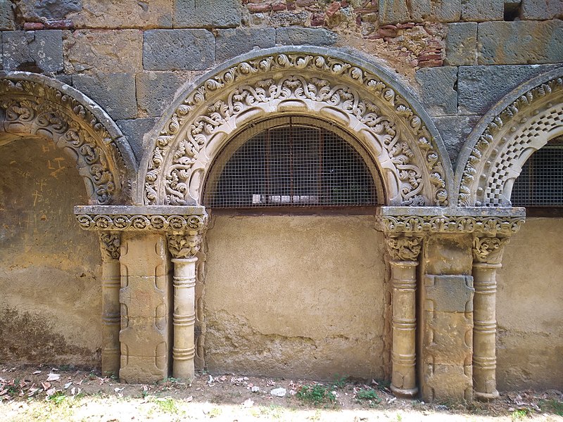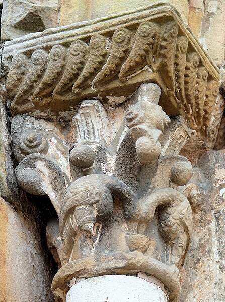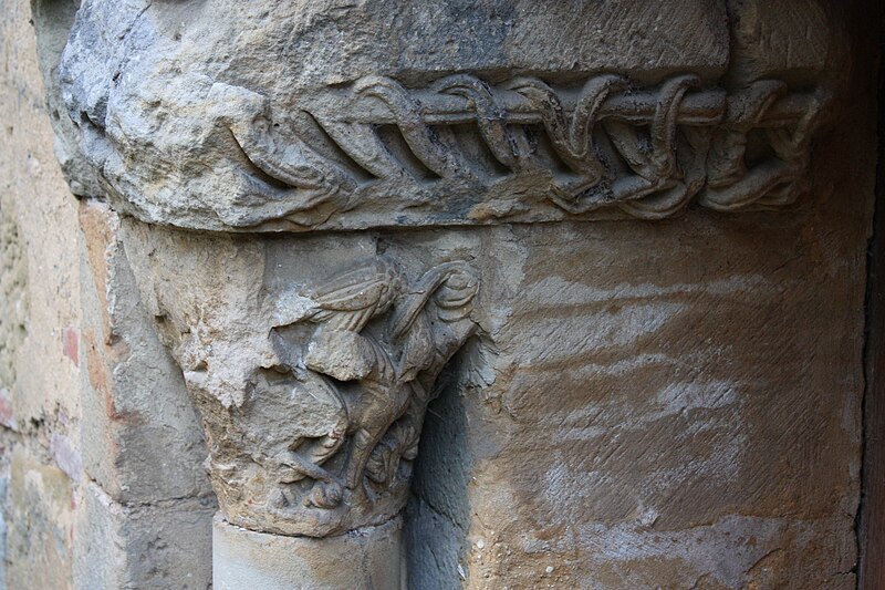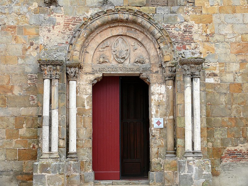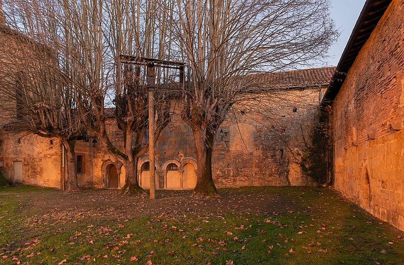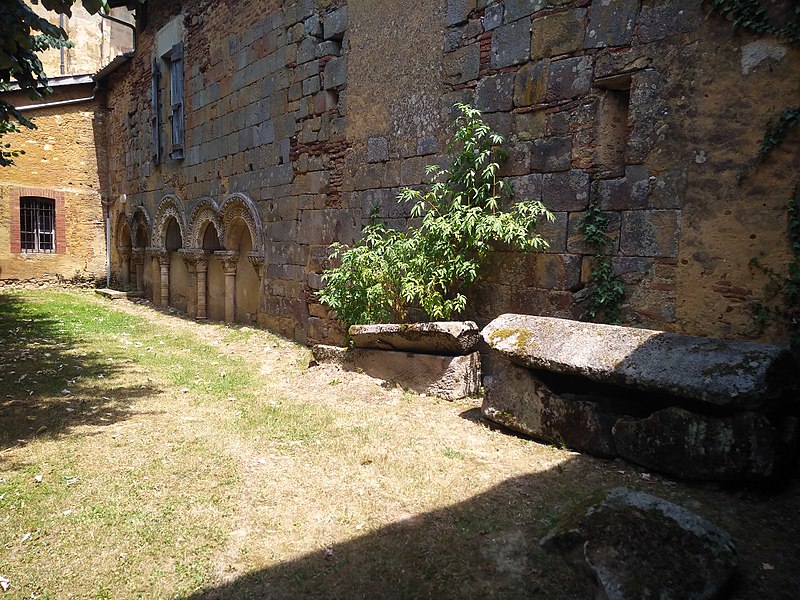 Le portail septentrional, unique vestige des portails romans, conserve un tympan représentant le Christ en majesté dans une mandorle entourée du tétramorphe, et certaines sculptures du cloître et du portail ont été remaniées au XIXe siècle après des destructions survenues en 1569. En 1954, une sculpture romane élevée à 90 cm, rattachée au « Signum Leonis » de Saint‑Sernin, fut mise au jour lors de travaux et pourrait provenir de l'ancien portail occidental. Du cloître subsistent une aile des bâtiments conventuels, l'entrée de la salle capitulaire et cinq arcades murées, les deux premières d'origine et les trois autres restaurées, tandis que la décoration sculptée, en partie détruite au XVIe siècle, a été largement refaite au XIXe siècle. Le mobilier de l'église, tableaux et objets liturgiques, est référencé dans la base Palissy.