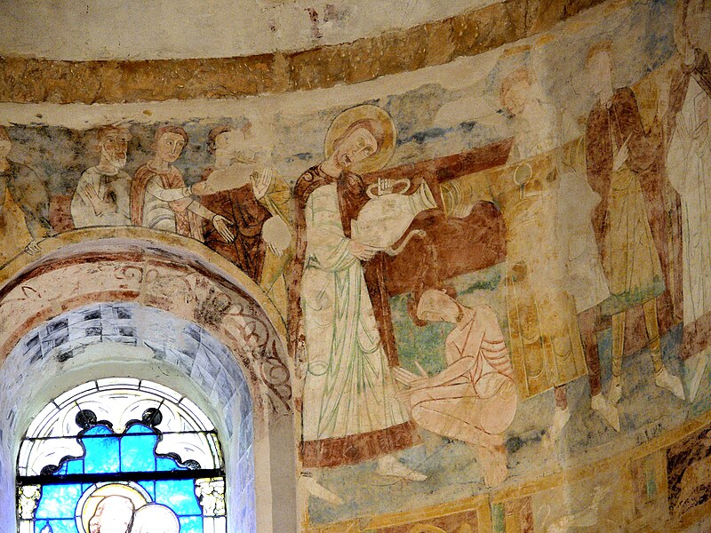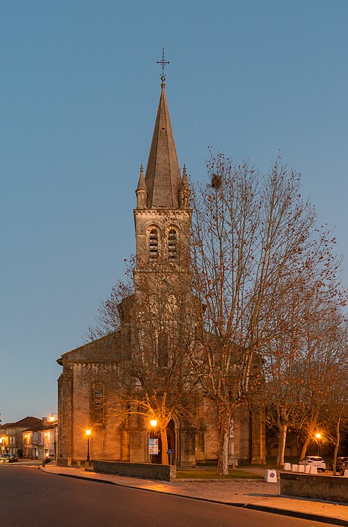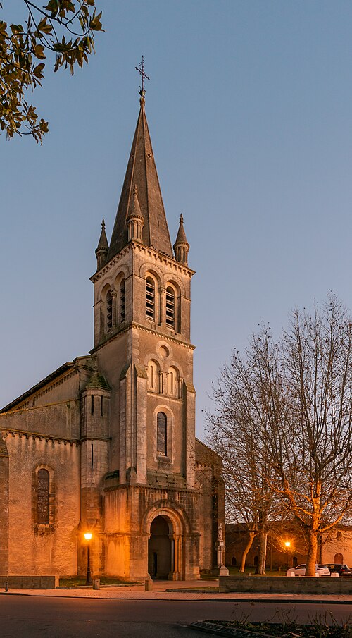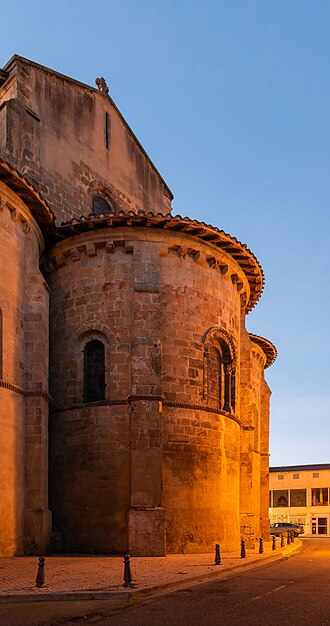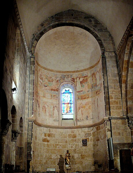 La collégiale Saint-Nicolas de Nogaro, ancienne collégiale du Gers, a été fondée par l'archevêque d'Auch saint Austinde qui fit édifier une chapelle consacrée en 1060 et la dota sur des terrains acquis auprès du comte d'Armagnac. Rapidement transformée en collégiale, elle accueillit des chanoines réguliers suivant la règle de saint Augustin et le chapitre fut affilié à la cathédrale d'Auch ; au XIIIe siècle, l'archevêque limita le nombre de chanoines à douze avec divers dignitaires et prébendiers. La collégiale accueillit plusieurs conciles provinciaux et connut de nombreuses vicissitudes : en 1569 les troupes de Montgomery l'endommagèrent en détruisant des piles et des voûtes, puis des réparations furent menées aux XVIIe et XVIIIe siècles, notamment la reconstruction des voûtes en 1662 et l'installation de stalles au XVIIIe siècle. Au XIXe siècle, deux campagnes de restauration et de modification, en 1862 et dans la seconde moitié du siècle avec des travaux achevés en 1889, modifièrent fortement l'aspect de l'édifice — transformations que Marcel Durliat jugea d'une particulière indigence — : restauration de colonnes et chapiteaux, repeints des absides, remplacement du clocher et aménagement d'un nouveau portail occidental, allongement du vaisseau central et remaniement des couvertures. Des campagnes récentes ont révélé des décors romans importants : des sondages et restaurations en 1995 mirent au jour de remarquables fresques dans les absidioles, dont la vie de saint Laurent en deux registres dans l'absidiole nord et, sur la voûte de l'absidiole sud, un Christ en majesté dans une mandorle entouré du tétramorphe ; l'analyse des pigments a montré l'usage d'ocres, d'aérinite et de lapis-lazuli. L'église a été classée au titre des monuments historiques en 1998 et a reçu en 2004 des vitraux contemporains de l'atelier Creunier, qui déclinent des motifs végétaux (platane, rosier, olivier, palmier) associés selon la symbolique reprise de l'Ecclésiaste et de saint Thomas d'Aquin aux différentes catégories de saints.