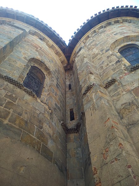 Implantée à l'extrémité de la ville, la collégiale présente un aspect extérieur sobre, en partie défiguré par les restaurations du XIXe siècle qui ont masqué les parties anciennes ; elle conserve néanmoins des traces de sa fortification ancienne et un clocher‑tour en pierres claires. L'édifice mesure 42,10 m de longueur pour 21,40 m de largeur et se compose d'un vaisseau central et de bas‑côtés, prolongés par un chevet à abside et absidioles ; la nef, longue de 28,6 m pour 6,4 m de large, comporte trois travées romanes plus une travée occidentale ajoutée au XIXe siècle. La voûte en demi‑berceau du vaisseau central, reconstruite en 1662, est portée par des arcs doubleaux qui reposent sur des piliers à chapiteaux sculptés, et des arcs en tiers‑point de la fin du XIe siècle séparent la nef des bas‑côtés ; le clocher actuel date du XIXe siècle. L'abside présente deux niveaux séparés par un cordon de billettes et un mur inférieur percé de cinq niches à arcades et chapiteaux restaurés au XIXe siècle ; l'arc triomphal s'appuie sur des colonnes engagées aux chapiteaux à feuillages. Ces chapiteaux offrent un répertoire varié — feuilles d'acanthe, centaure entre deux cavaliers, Daniel entouré de lions, musiciens, le Sauveur nimbe crucifère, Jésus sur un esquif avec deux pêcheurs — dont le style évoque celui des chapiteaux de la basilique Saint‑Sernin de Toulouse.