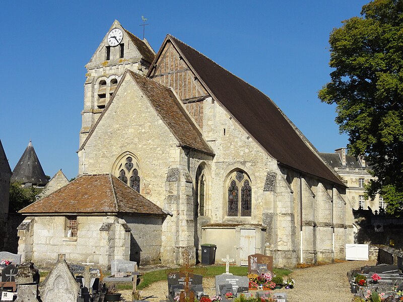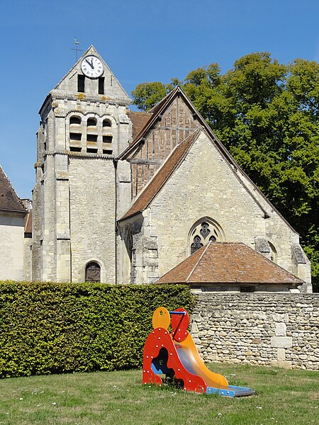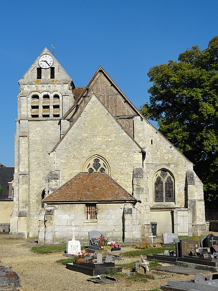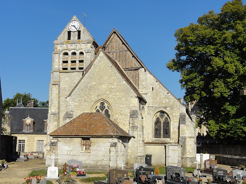 Le mobilier comprend neuf éléments classés ou inscrits au titre des objets, parmi lesquels figurent notamment les fonts baptismaux en pierre du XIIIe siècle, octogonaux et classés depuis novembre 1912, ainsi qu'une grande dalle funéraire du XVIe siècle à effigie sculptée d'un chevalier, elle aussi classée. Trois statues en bois polychrome — une sainte Barbe du XVIIIe siècle et une Vierge à l'Enfant et un saint (Saint Roch ou Jacques) du XVIe siècle — ont été inscrites en mai 1996 et sont conservées au musée de l'Archerie et du Valois de Crépy‑en‑Valois, tandis que le Christ en croix de la nef reste in situ mais non protégé. Les peintures comprennent deux grands tableaux du XVIIIe siècle, l'Adoration des Mages et saint Simon Stock, inscrits en février 1993, ainsi que deux panneaux de polyptyque à double face datés de 1609 représentant la Visitation et la Circoncision d'une part, et l'Annonciation et l'Adoration des bergers d'autre part, classés depuis novembre 1912. Certaines inscriptions anciennes ont été étudiées, notamment une notice généalogique anciennement transcrite qui mentionne « Cy gist noble homme Mre de Ligny… lequel trespassa le 7 février 1515 », en lien avec la dalle funéraire. L'absence de prêtre résident et le décès du dernier célébrant régulier en 2019 ont entraîné la raréfaction des offices réguliers, sans empêcher la tenue d'Eucharisties dominicales saisonnières.