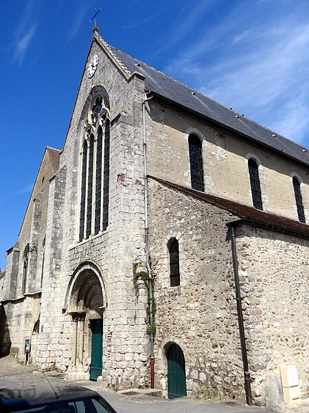 L’église Saint-Nicolas se situe à Saint-Arnoult-en-Yvelines, dans le département des Yvelines. Le site dépendait d’un prieuré qui fut l’un des plus riches de l’abbaye de Saint-Maur-des-Fossés ; ce prieuré est rattaché à Saint-Maur à partir de 717 et dépend de l’archevêché de Paris entre 1536 et 1789. La crypte, construite avant 949, est datée du IXe ou du Xe siècle. La première église remonte au XIIe siècle ; en 1104 une décision est prise de la reconstruire après un incendie et les travaux avancent d’est en ouest. La charpente s’effondre dans la seconde moitié du XIVe siècle, puis une nouvelle couverture est assurée à la fin du XVe siècle. Durant la seconde moitié du XVe siècle sont également reconstruites la charpente de la nef et celle du bas-côté sud. En 1523, le prieur Odart de la Vove transforme le bas-côté nord et fait construire deux travées ; cette partie sert alors d’église paroissiale sous le vocable Saint-Nicolas. Une chapelle dédiée à saint Fiacre est mentionnée en 1738. En 1877 est percée une grande fenêtre dans la nef. En 1902 sont ajoutées ou achevées trois travées du bas-côté nord. Des travaux de restauration ont également été menés dans la seconde moitié du XXe siècle. Les bâtiments du prieuré sont encore visibles au XVIIIe siècle. L’édifice a été classé au titre des monuments historiques en 1993. L’église est rattachée au groupement paroissial de Saint-Arnoult-en-Yvelines. Les fonts baptismaux font l’objet d’une notice distincte et des ressources consacrées à l’architecture et au patrimoine religieux (Mérimée, Clochers de France, GCatholic, Observatoire du patrimoine religieux) fournissent des informations complémentaires.