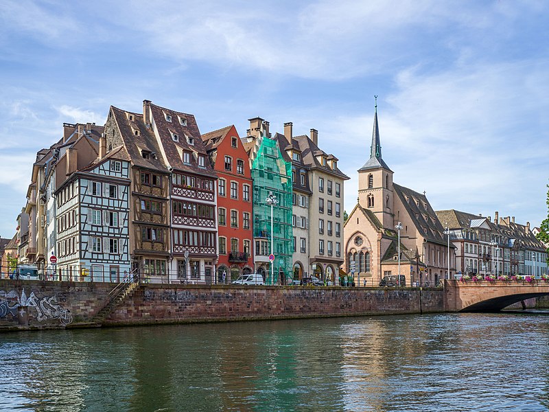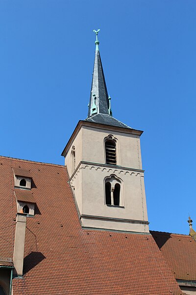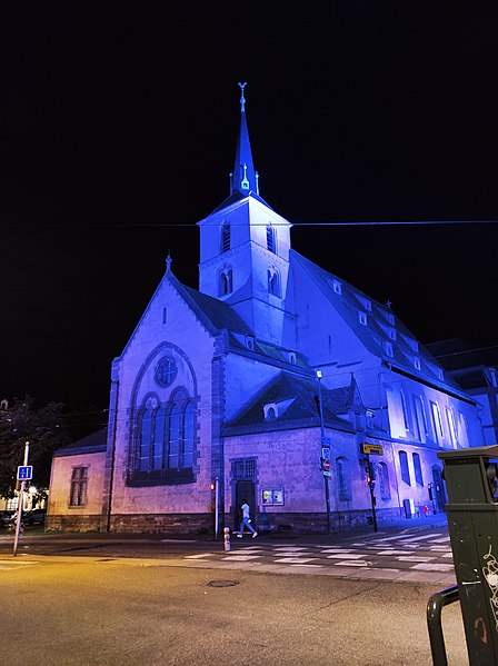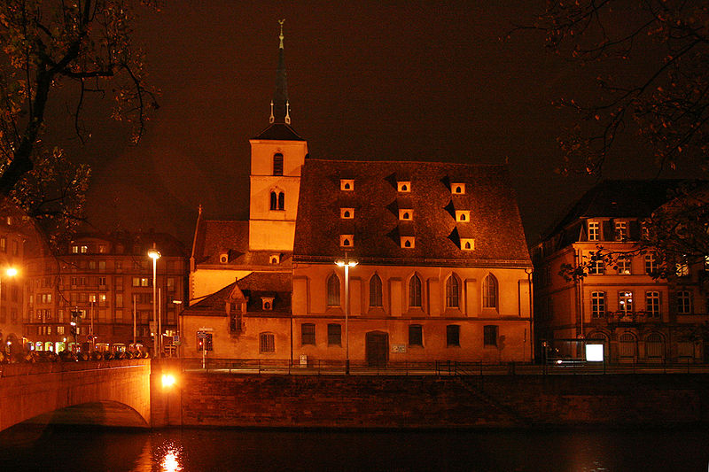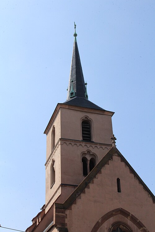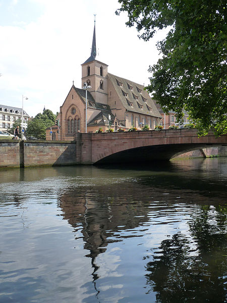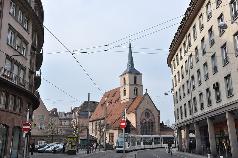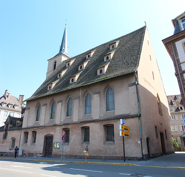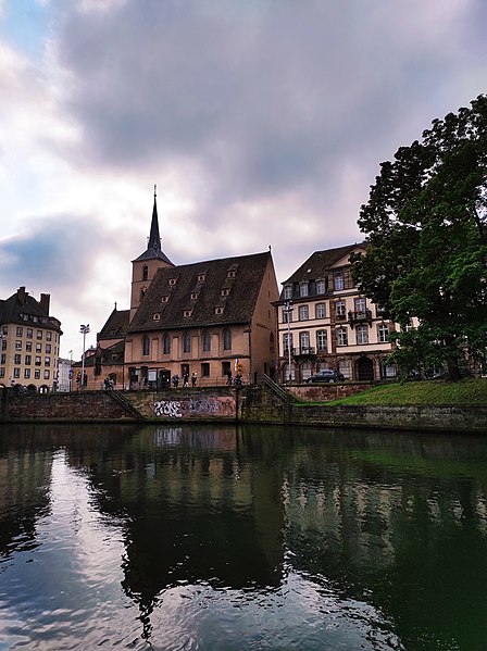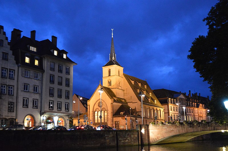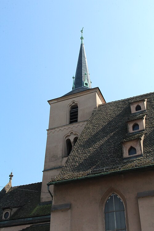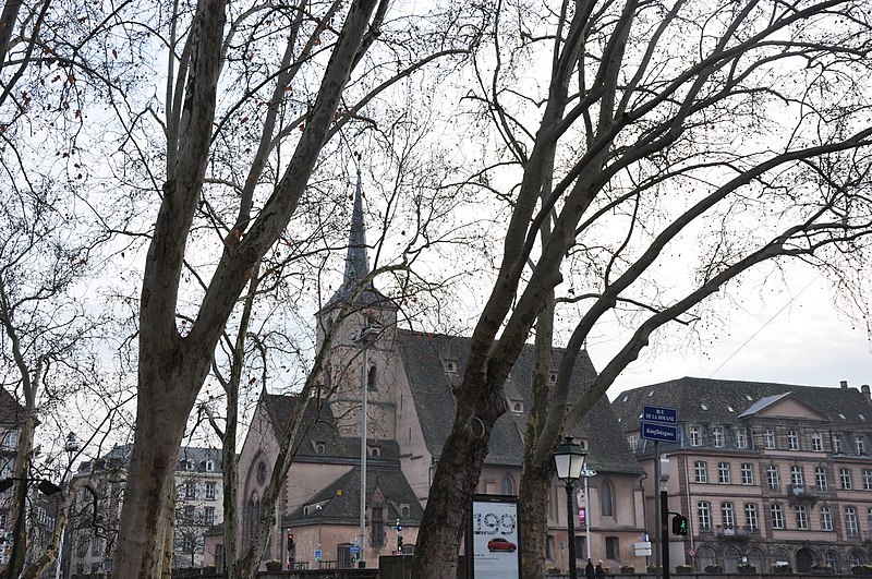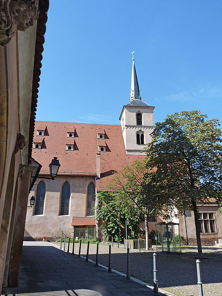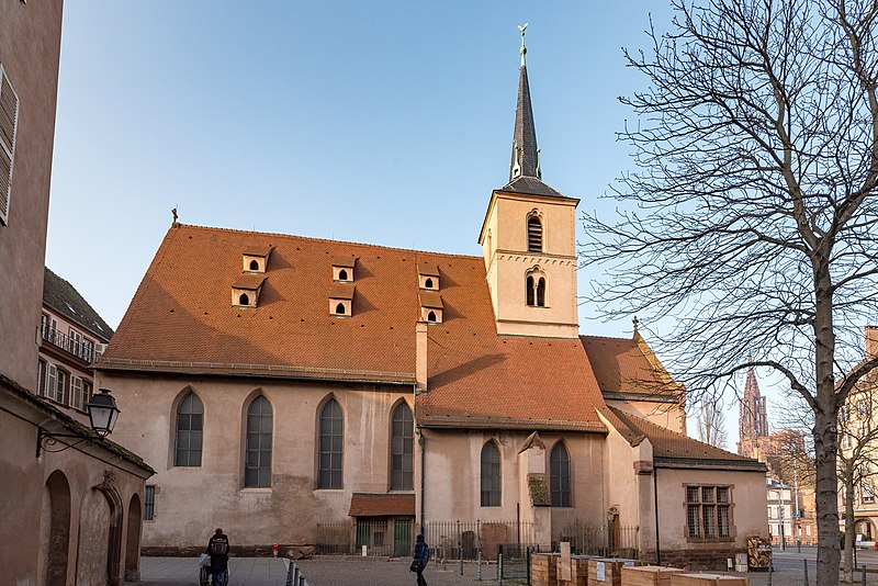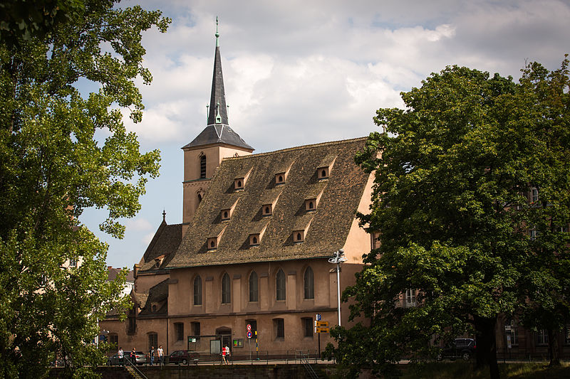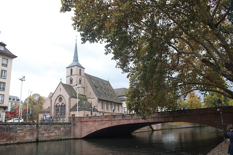 L’église protestante Saint-Nicolas, située quai Saint‑Nicolas dans le quartier du Finkwiller à Strasbourg, borde l’Ill dans le centre historique de la ville. Dédiée à Nicolas de Myre, elle accueille aujourd’hui une communauté du renouveau charismatique rattachée aux Églises protestantes d’Alsace‑Moselle. Classé au titre des monuments historiques depuis le 10 mai 1995, l’édifice est un exemple représentatif des églises‑halles construites dans la région du Rhin supérieur entre le XIVe et le XVIe siècle. Une première chapelle romane, fondée en 1182 par le chevalier Walther Spender, avait été élevée sur le site d’un petit fort romain ; elle était dédiée à Marie‑Madeleine. L’église actuelle a été édifiée entre 1387 et 1454, le sanctuaire ayant été agrandi après la peste de 1381 puis en 1454 par l’architecte Diebolt Mosung, avec d’autres modifications intervenues au XVIe siècle. La tour a été dotée d’une flèche vers 1600 (une mention indique 1585) et l’intérieur a été remanié au XVIIe siècle. Les parties orientales, ainsi que la façade et la sacristie, ont été reconstruites en 1905 par l’architecte Émile Salomon, également auteur de l’église du Temple Neuf. L’intérieur conserve des vestiges de fresques du XVe siècle découverts sous un badigeon qui s’écaillait, ainsi qu’une galerie en bois. L’orgue construit en 1707 par les frères André et Gottfried Silbermann a été démonté en 1967. Parmi les anciens pasteurs figurent des personnalités telles que Théodore Beck, Jean‑Frédéric Bruch, Georges Casalis, Mathias Engel, Antoine Firn, Charles Théodore Gérold, Isaac Haffner, Albert Schweitzer — qui y a notamment présidé le mariage de Theodor Heuss le 11 avril 1908 — et Paul Émile Berron, fondateur de l’Action chrétienne en Orient en 1922.