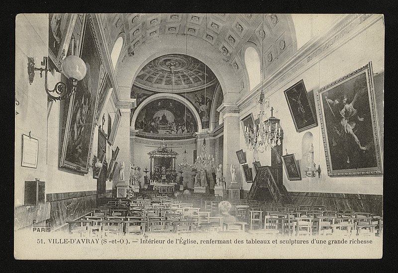 L’église Saint-Nicolas-et-Saint-Marc est l’église paroissiale catholique de Ville‑d’Avray, dédiée à saint Nicolas et à saint Marc. Construite pendant la Révolution entre 1789 et 1791 sur ordre de Thierry de Ville‑d’Avray, elle a été édifiée d’après les plans de l’architecte Charles‑François Darnaudin, assisté par l’entrepreneur Jacques Marquet, et financée aux frais de Thierry, intendant général du Garde‑Meuble de la Couronne. La première pierre fut posée le 11 juillet 1789 et l’église, élevée sur l’emplacement d’un sanctuaire médiéval démoli en raison de son mauvais état, reçut son double vocable en mémoire du patron de l’ancienne église et du seigneur de Ville‑d’Avray, qui possédait une chapelle particulière au nord. Consacrée en 1791 par un prêtre constitutionnel, elle fut transformée en temple de la Raison en 1793 puis rendue au culte en 1795. L’édifice a fait l’objet de restaurations au XIXe siècle, notamment en 1830 et entre 1836 et 1839 ; la sacristie et des bâtiments annexes ont été adossés à l’église en 1861 et de nouvelles salles de réunion ont été ajoutées au sud en 1972. L’extérieur et l’intérieur ont par ailleurs été restaurés entre 1971 et 1993. De style Louis XVI, la façade présente un porche encadré de lignes de refends et un fronton abritant une horloge ; elle est flanquée d’un clocher carré peu élevé. L’église renferme plusieurs œuvres d’art, dont une statue de saint Louis par James Pradier et un modèle en plâtre du Baptême du Christ de François Rude, dont l’original se trouve à l’église de la Madeleine à Paris. Dans les chapelles latérales et sur les parois du transept figurent des fresques et petites peintures murales de Jean‑Baptiste Camille Corot, datées du deuxième quart du XIXe siècle, et un grand tableau de jeunesse de Corot, Saint Jérôme dans le désert (1837), est placé à gauche dans la nef. Les parois du transept décorées par Corot font l’objet d’un classement au titre des monuments historiques depuis le 5 novembre 1928, et l’ensemble de l’église est inscrit au titre des monuments historiques depuis le 27 février 1934. L’intérieur de l’église a été utilisé comme décor pour une scène de la série télévisée Fais pas ci, fais pas ça en 2016. Pour approfondir, la bibliographie cite notamment Ville‑d’Avray, Cinq siècles d’Histoire (Société des Amis du Musée), et des ressources en ligne sont disponibles via le site de la paroisse ainsi que des bases spécialisées telles que Clochers de France, GCatholic, l’Observatoire du patrimoine religieux, Mérimée, Structurae et MusicBrainz.