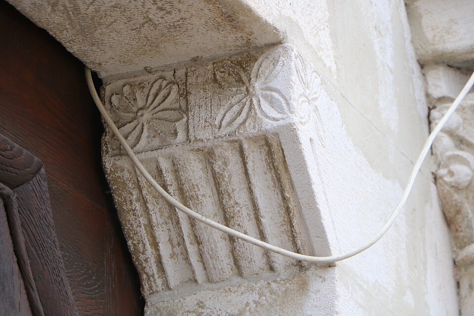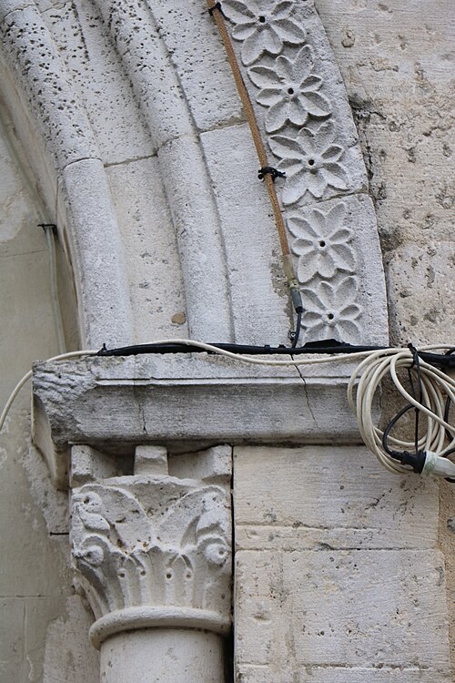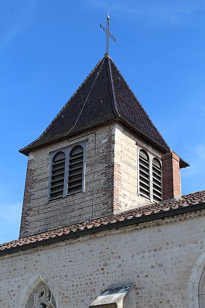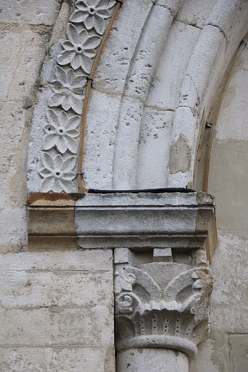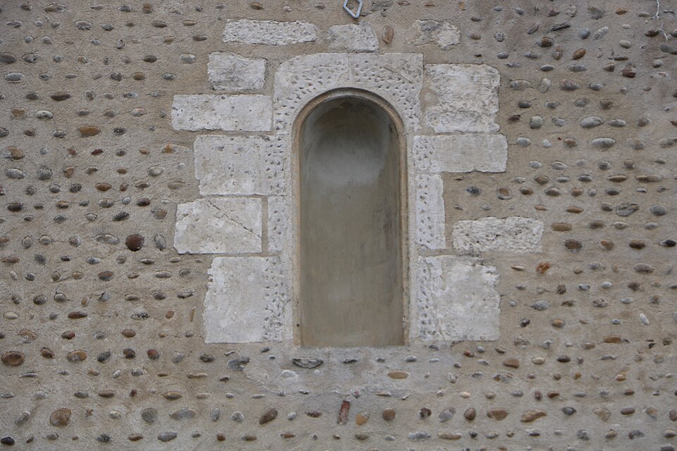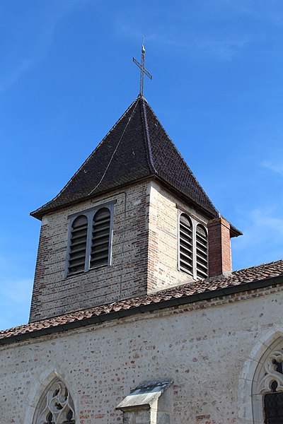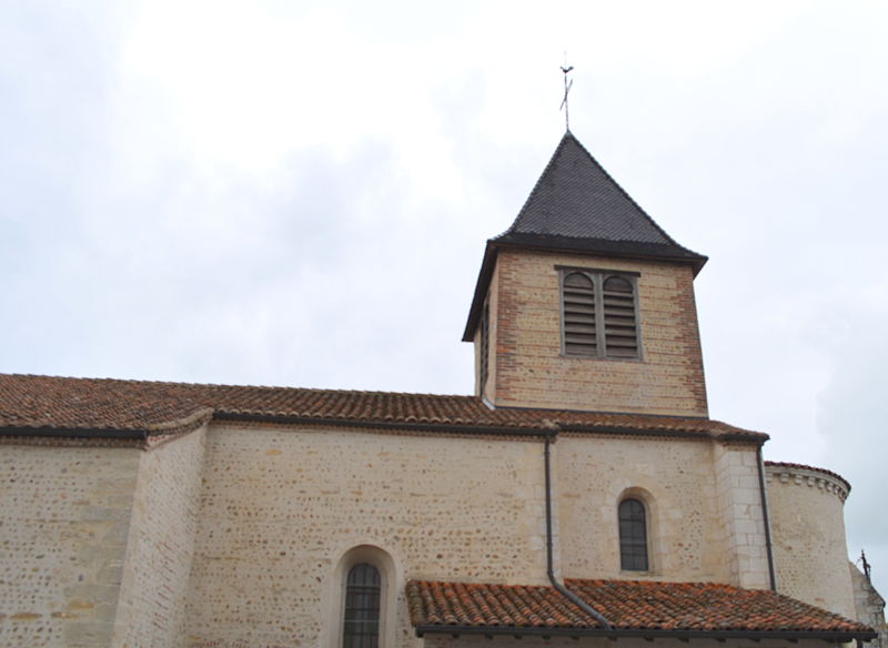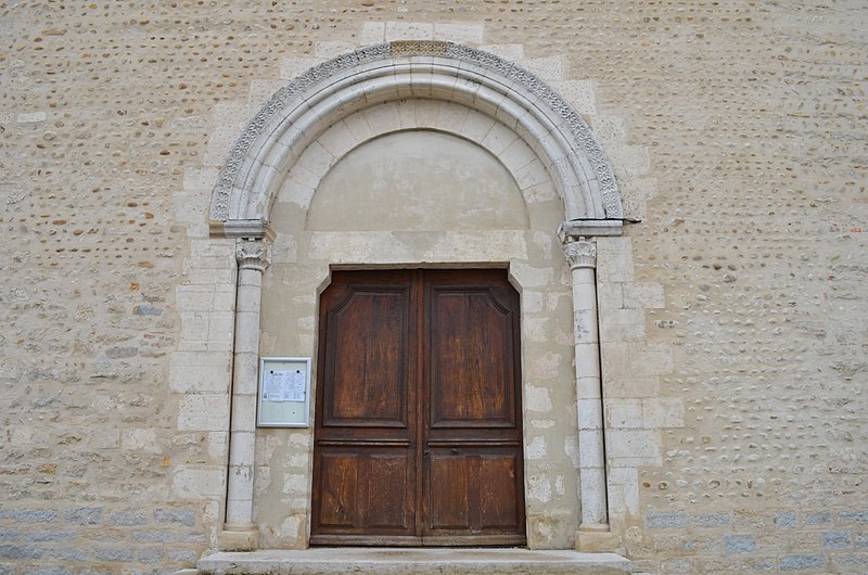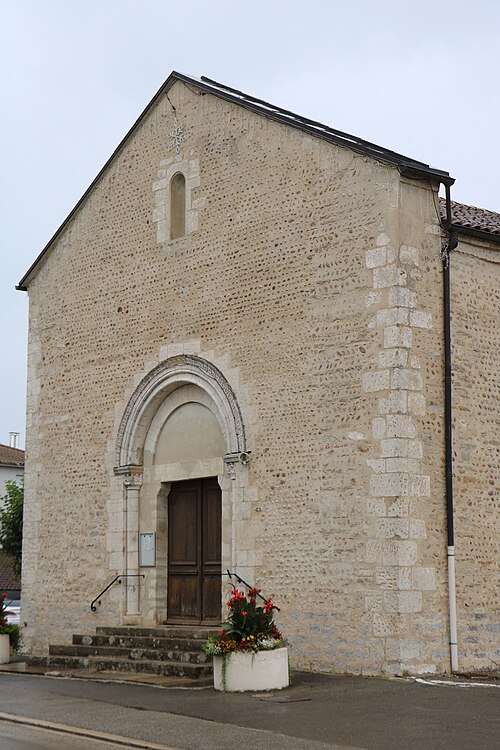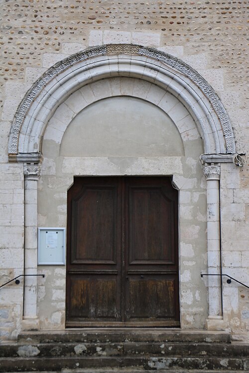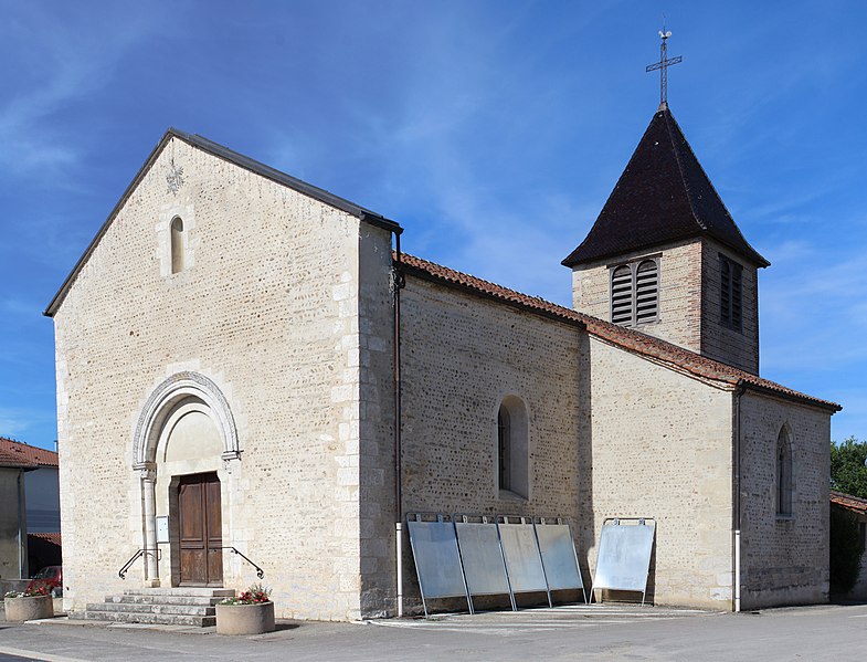 L’église Saint-Nizier, située à Saint-Nizier-le-Désert dans l’Ain (Auvergne-Rhône-Alpes), est inscrite au titre des monuments historiques depuis le 21 octobre 1926. Orientée ouest-est, elle présente un plan basilical avec une large nef épaulée de deux chapelles et un portail roman à double battant surmonté d’un linteau et d’un tympan en plein cintre. La nef, aujourd’hui enduite de blanc, est couverte d’une voûte en anse de panier et abrite plusieurs œuvres, tableaux et sculptures ; elle bénéficie de grandes baies en retrait ornées de vitraux à motif géométrique qui lui apportent une luminosité inhabituelle pour un édifice roman. Les chapelles latérales se distinguent par leur voûtement en croisée d’ogives et leurs baies pourvues d’un remplage élégant avec mouchettes. Le chœur, élevé d’une marche et non enduit, est polychrome : rythmé par des colonnes adossées, il est couvert d’une voûte en cul-de-four peinte en bleu étoilé et ornée d’un chrisme visible depuis la nef. Au centre se trouvent l’autel et un retable de pierre ; derrière le retable, des bancs de bois occupent l’abside pour les clercs. Les archives montrent que la nef était également polychrome au début du XXe siècle, avec un décor d’appareil rectangulaire orné de détails cruciformes, et l’on distingue encore des traces de la voûte étoilée là où l’enduit a disparu. Le décor et les éléments sculptés comprennent notamment le chrisme du chœur, la croix sommitale de la tour surmontée d’un coq visible sur des cartes postales anciennes, un chemin de croix gravé ainsi que diverses statues, dont une Vierge à l’Enfant et saint Denis représenté avec sa tête coupée.