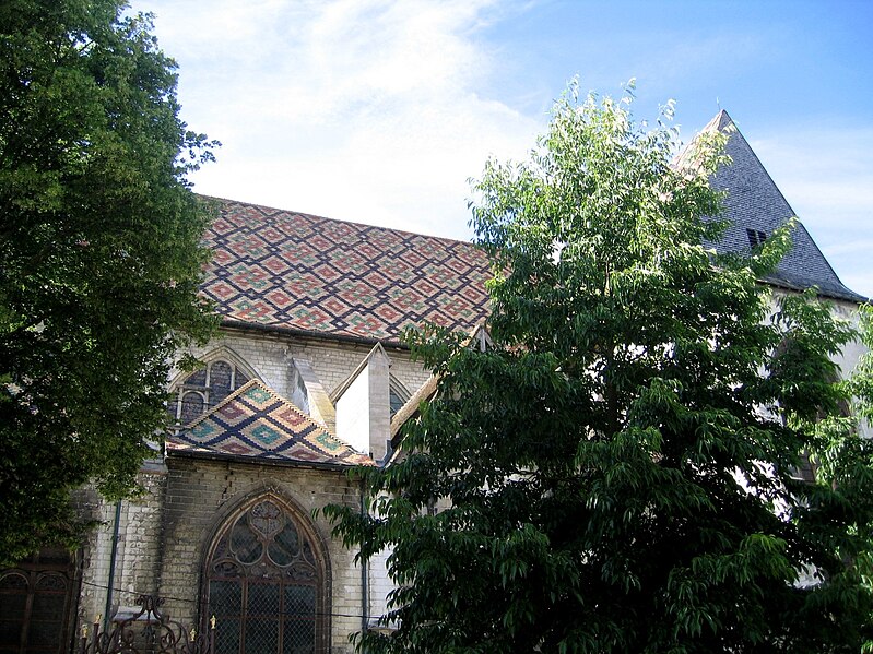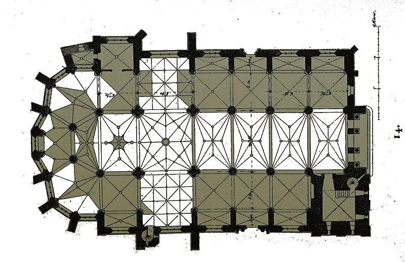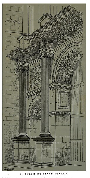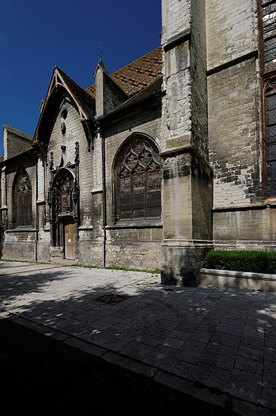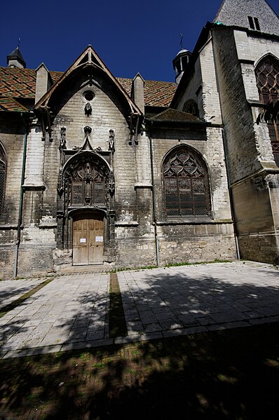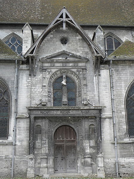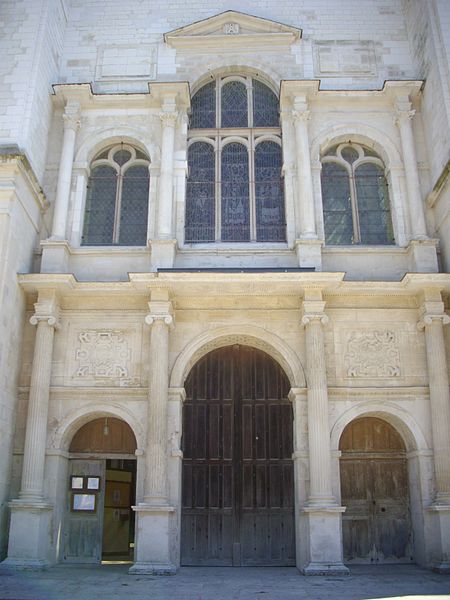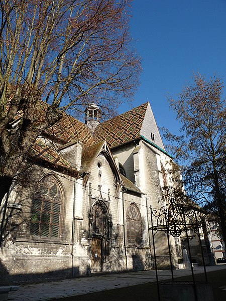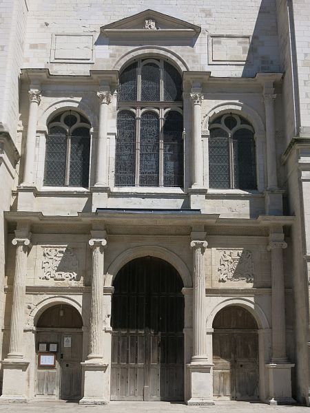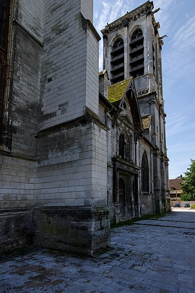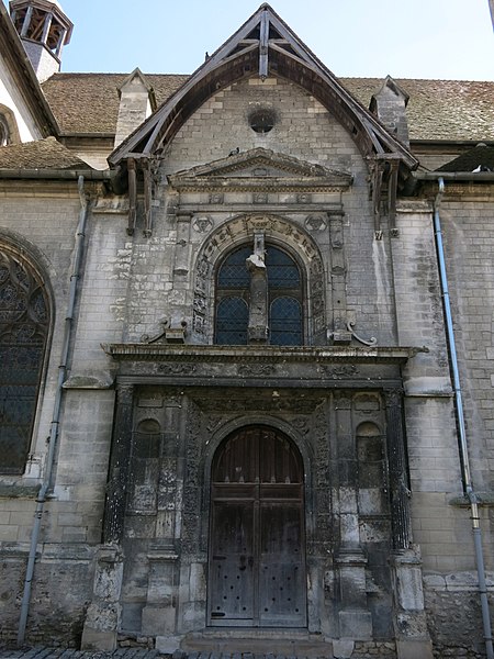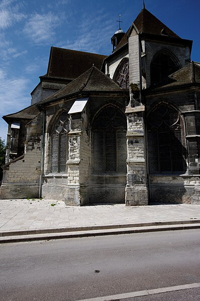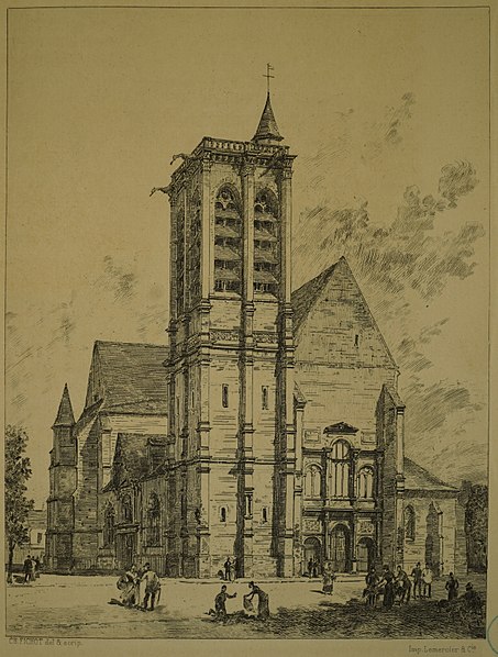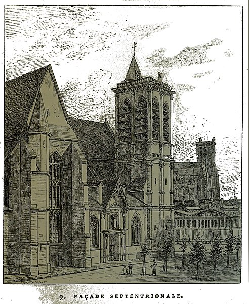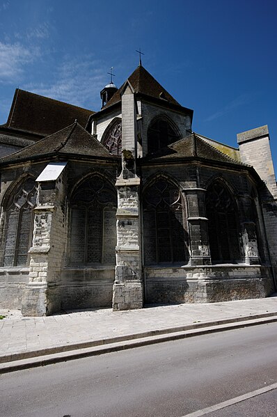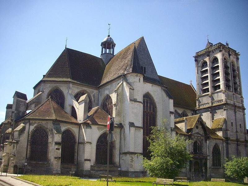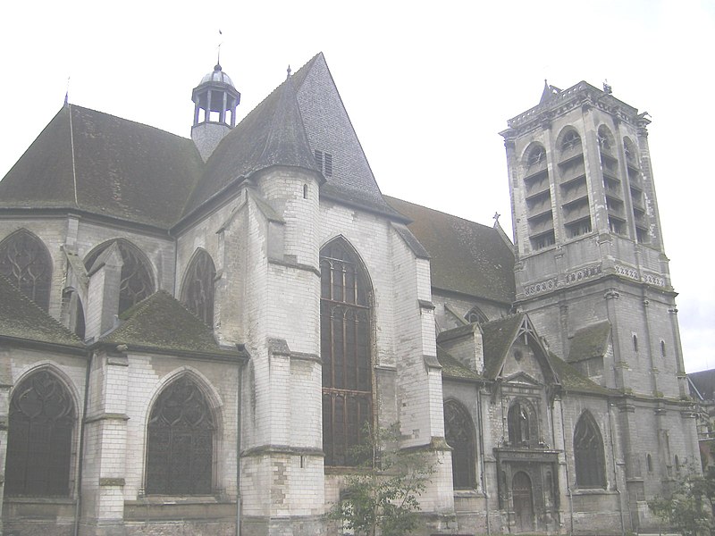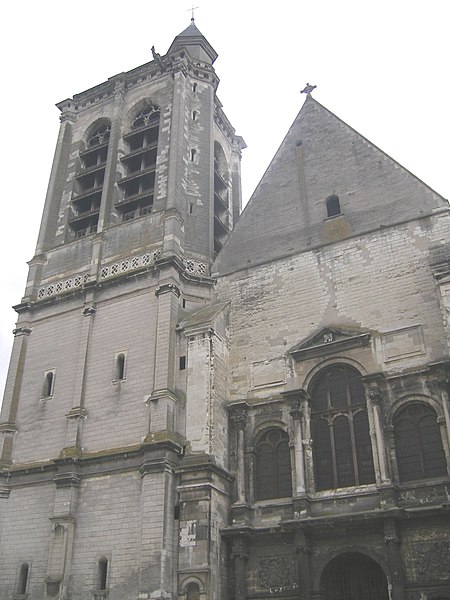 Le bâtiment actuel date du XVIe siècle ; il suit un plan rectangulaire à trois nefs et quatre travées et a été couvert en 1582. L’abside conserve des vitraux datés de 1505 et l’église laisse une large place à la lumière par de grandes baies. Le portail nord, de style Renaissance, est daté de 1531 et achevé en 1548 ; le portail occidental, attribué à Dominique Florentin en 1574, porte des monogrammes en C associés à Charles X. Le portail sud est de style gothique flamboyant et a été construit en 1531. Le bâti est globalement de style gothique, sauf pour les deux premières travées de la nef et le portail nord.