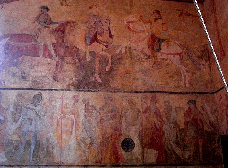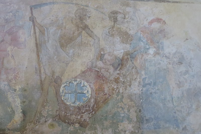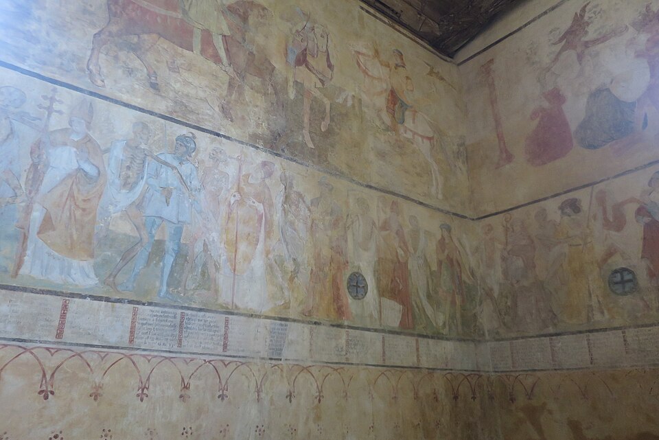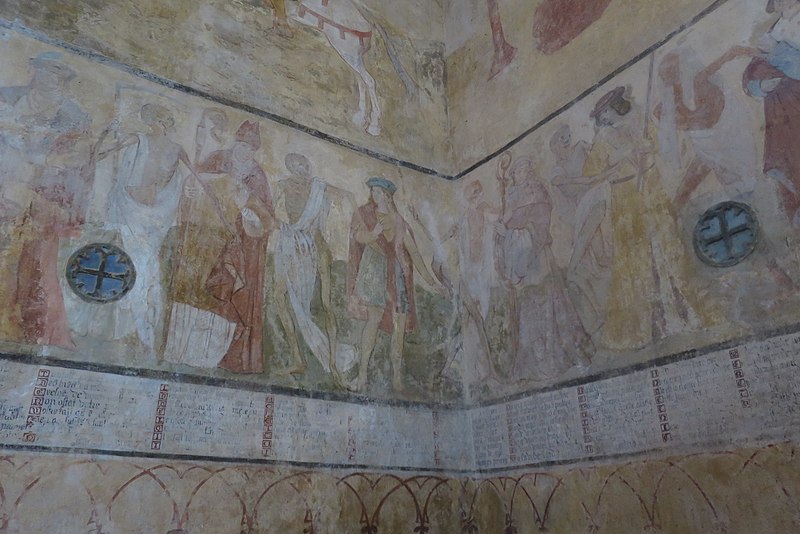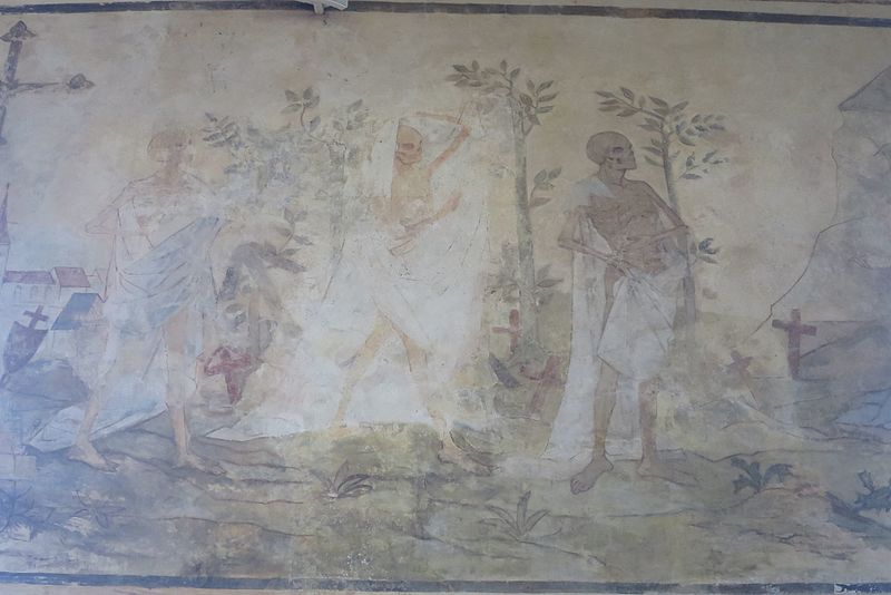 L’église Saint-Orien est située à Meslay-le-Grenet, dans le département d’Eure-et-Loir en région Centre-Val de Loire. Le monument est classé au titre des monuments historiques depuis le 27 décembre 1913. La nef principale présente des maçonneries paraissant dater du XIIe siècle, tandis que le collatéral a dû être ajouté au XVIe siècle. C’est à cette période de transformation que furent exécutées les piles prismatiques à chapiteaux sculptés et que la charpente du vaisseau principal fut refaite; la décoration picturale semble également provenir de ces aménagements. Peintes sur deux murs de la nef, des peintures murales comprennent une exceptionnelle danse macabre attribuée à la fin du XVe siècle, ainsi que des scènes du Dit des Trois morts et des trois Vifs et de la Passion du Christ. La danse macabre, découverte en 1864, a été mise en valeur en 1979. En 1865, Paul-Alfred Colin et Camille Marcille ont été chargés de restaurer les fresques, leur intervention ayant suscité une polémique sur les choix artistiques. Sur le mur sud, l’affrontement entre la Mort et les hommes commence au registre inférieur par les représentations du pape et de l’empereur et se termine, au revers de la façade, par l’enfant, l’usurier et l’ermite. Le texte d’accompagnement, un poème rédigé en 1376, demeure bien lisible. Au registre supérieur, le Dit des Trois morts et des trois Vifs raconte l’aventure de trois jeunes fous conduits à la repentance. Parmi les détails notables figure la représentation de la Mort emportant un nouveau-né. L’église Saint-Orien dépend de la paroisse Notre-Dame-du-Combray, rattachée au doyenné du Perche. Le vocable Saint-Orien renvoie à Orens d’Auch, confesseur du Ve siècle vénéré en Gascogne au Moyen Âge et patron paroissial de Meslay-le-Grenet; on retrouve également son nom à Villiers-Saint-Orien.