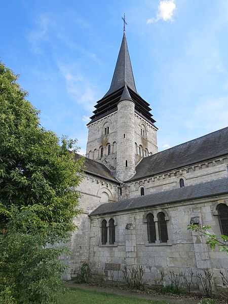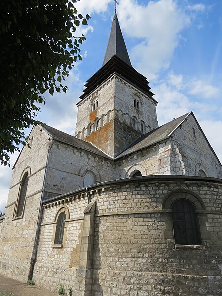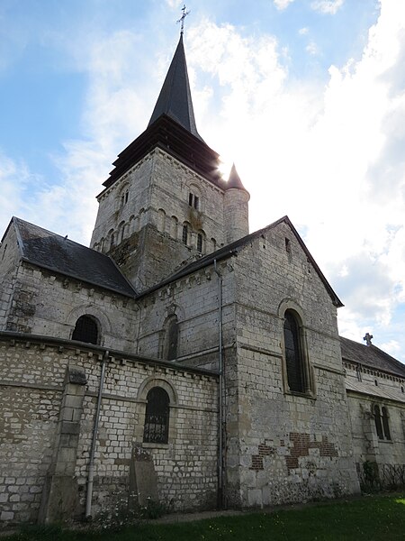 L'église Saint-Ouen est une église catholique située dans la commune de Léry, dans le département de l'Eure, au bord de la rivière Eure, voie fluviale vers Rouen. De style roman normand, l'édifice a été bâti entre 1130 et 1160. Sa flèche date du XVIe siècle. L'intérieur est en pierre calcaire et le plafond est en plâtre peint ; le chœur est décoré d'une imposante croix du Christ. Classée au titre des monuments historiques en 1911, l'église a également possédé une horloge, retirée au cours du XXe siècle. Des ressources et notices sont accessibles sur Wikimedia Commons, GCatholic.org, l'Observatoire du patrimoine religieux, la base Mérimée et les portails consacrés aux monuments historiques, au département de l'Eure et à l'architecture chrétienne.