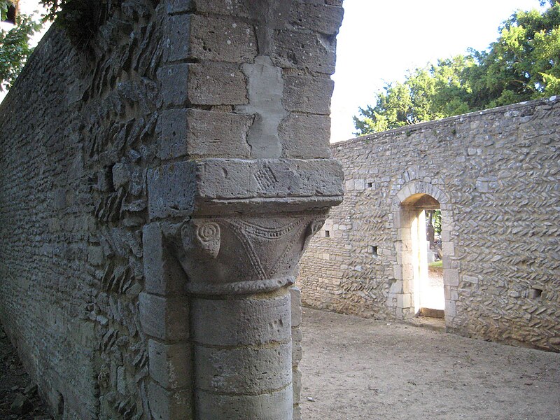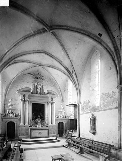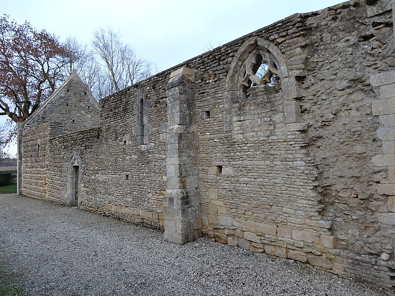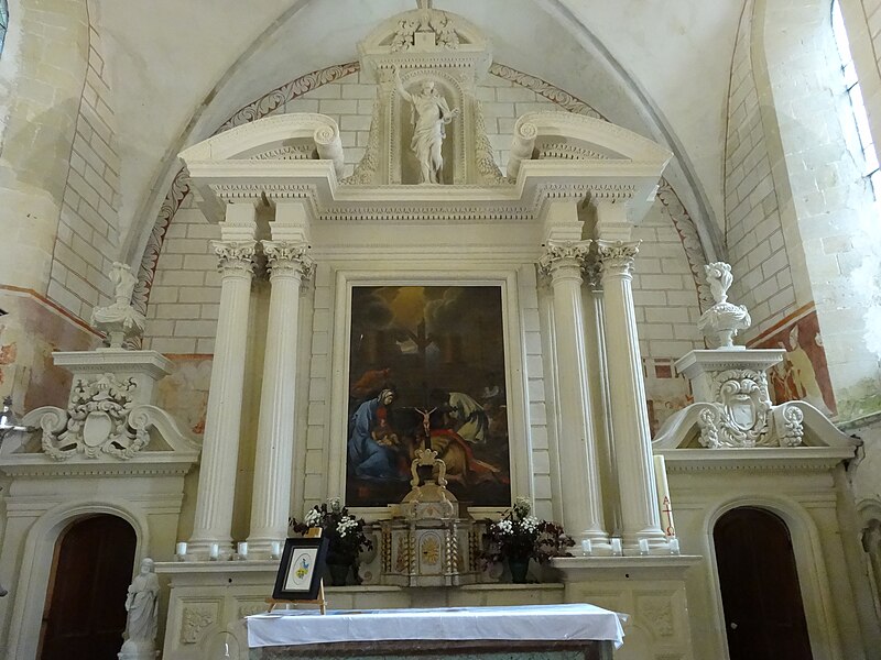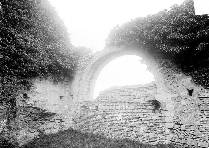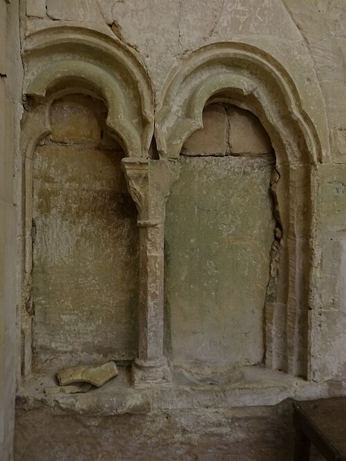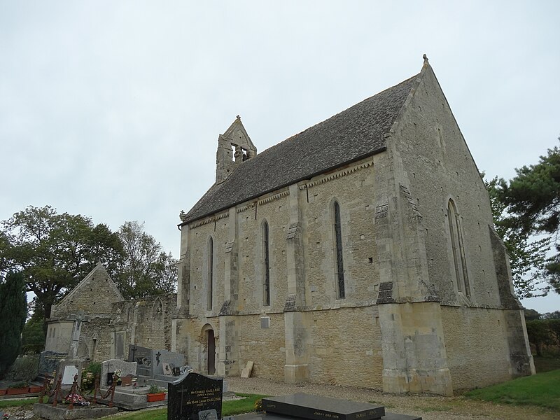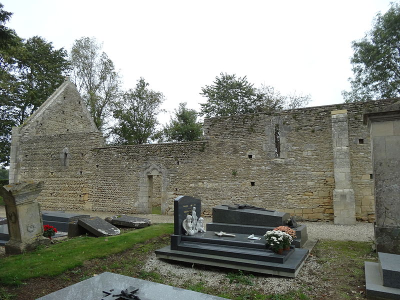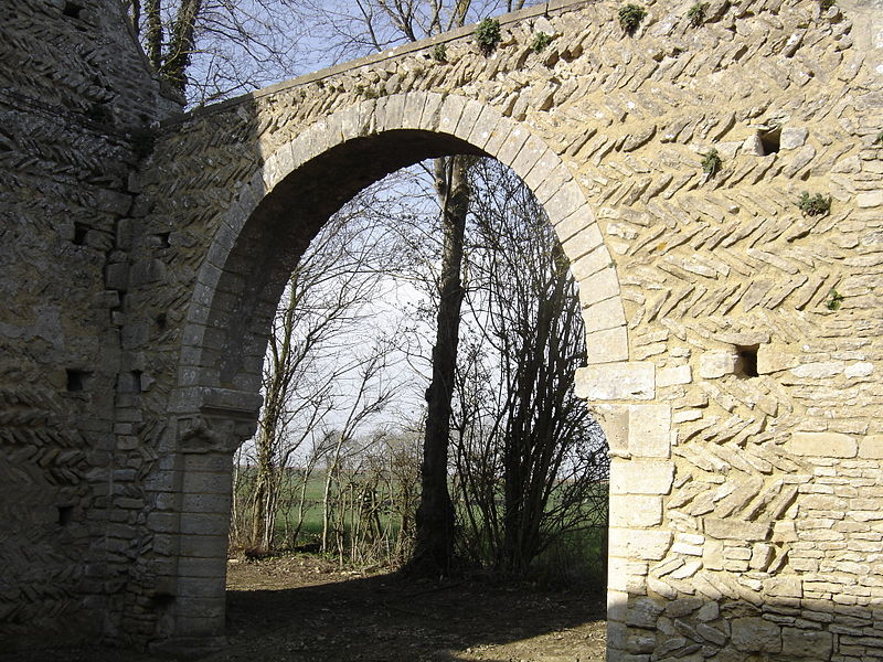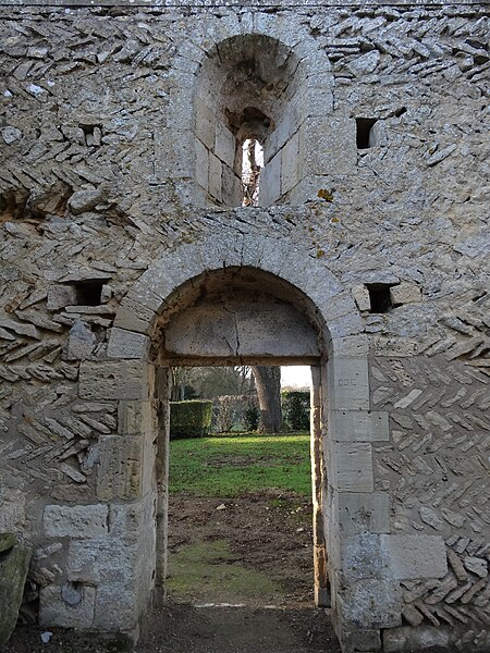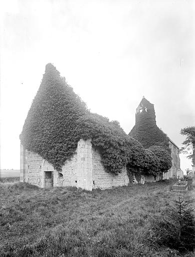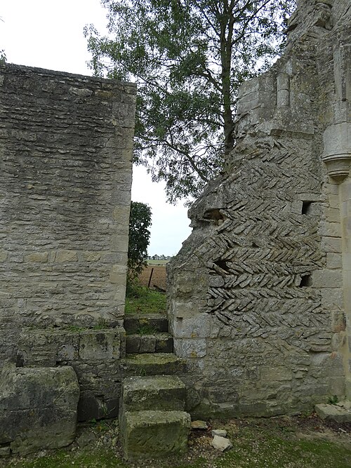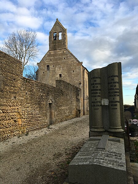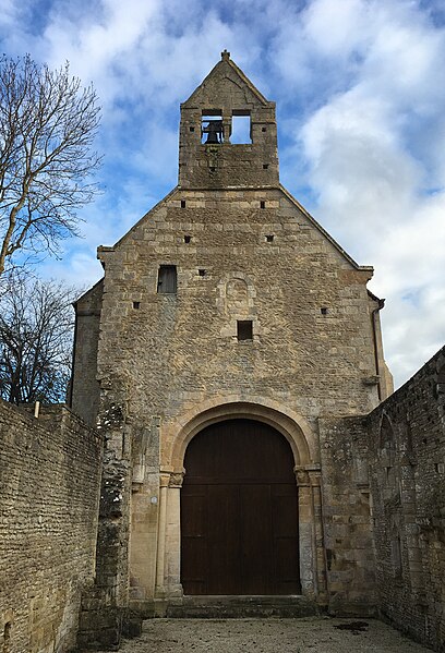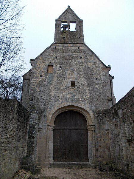 L'église, orientée nord-ouest — sud-est, présente un chœur restauré entièrement clos ; de la nef ne subsistent que les murs. Le pignon nord-ouest, en arête-de-poisson, est percé d'une petite porte rectangulaire dont le linteau supporte un arc de décharge, surmontée d'une fenêtre romane du XIe siècle, étroite à l'extérieur et ébrasée à l'intérieur, dont le linteau en pierre est protégé par un arc de décharge intérieur. Le mur sud, également en arête-de-poisson à l'origine, montre de l'ouest vers l'est une fenêtre romane du XIe siècle, puis une porte du XIIIe siècle rectangulaire surmontée d'un arc en mitre trilobé orné de trèfles à quatre feuilles ; la maçonnerie y change pour de petits moellons disposés horizontalement, percés successivement d'une fenêtre cintrée du XIIe siècle et d'une fenêtre à meneaux de style gothique datée des XIVe ou XVe siècles, séparées par un contrefort renforcé au XVe siècle. À l'intérieur du même mur sud se voient une crédence gothique du XIIIe siècle sous la baie à meneaux et une petite niche romane. Le mur nord de la nef est percé d'une grande arcade du XIe siècle qui ouvrait sur un bas-côté détruit aux XIVe ou XVe siècles ; l'arcade repose sur un chapiteau soutenu par une colonne engagée et, près de l'arc triomphal, subsistent les vestiges d'un escalier à vis menant aux combles. L'arc triomphal, fermé depuis 1981 par une porte massive et servant désormais de mur-pignon pour le chœur, comporte deux rouleaux dont l'un est orné d'un tore et des demi-colonnes portant des chapiteaux du début du XIIe siècle sculptés de godrons ; il est encadré de culs-de-lampe qui soutenaient la voûte de la dernière travée de la nef. Au-dessus de cette arcade se trouvent deux ouvertures, dont la plus ancienne, du XIe siècle, est bouchée ; elles mettaient en communication les combles de la nef et du chœur, et le clocher-mur était prévu pour recevoir deux cloches.