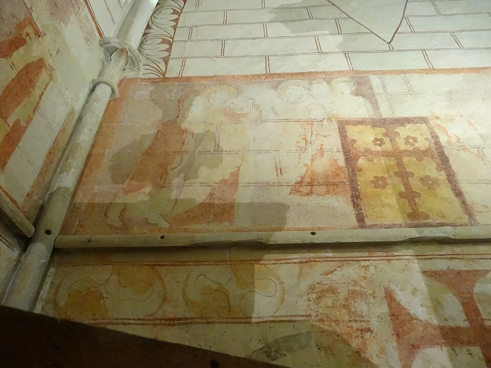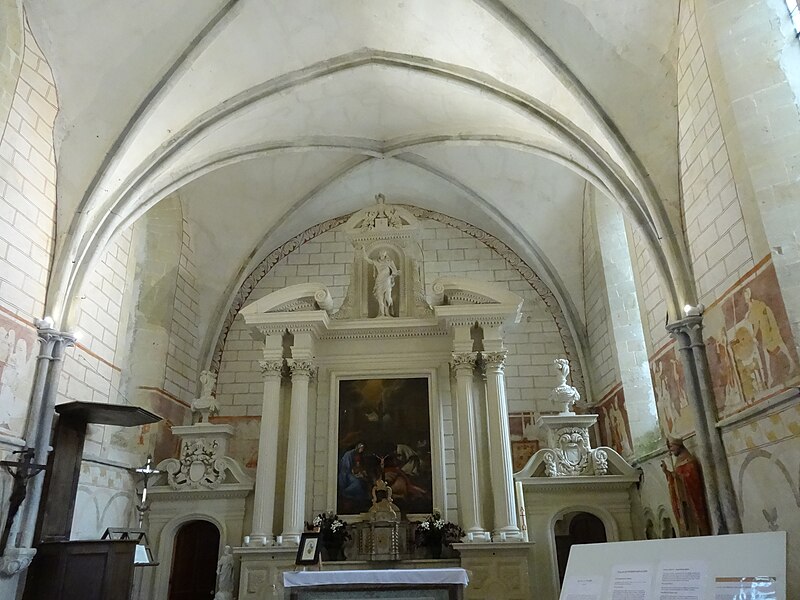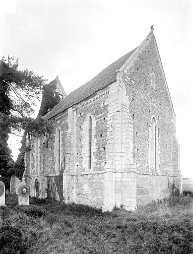 Le chœur, entièrement reconstruit au XIIIe siècle dans le goût gothique, est doté de hautes fenêtres en lancettes insérées entre des contreforts, d'une frise de dents-de-scie sous la toiture et d'un clocher à arcades sur le pignon ouest. Il comprend trois travées voûtées d'ogives retombant sur de fines colonnes aux chapiteaux élancés. Il abrite un ensemble autel et retable du début du XVIIe siècle, principalement en pierre blanche : quatre colonnes cannelées et jumelées à chapiteaux corinthiens soutiennent un fronton cintré brisé, au centre duquel un édicule à niche contient un Christ ressuscité. Le grand tableau central représentant l'Adoration des Mages porte les armes de la famille Le Sens surmontées d'un chapeau ecclésiastique, rappelant Gédéon Le Sens nommé prêtre de la paroisse en 1642 ; de part et d'autre, des amortissements de pierre couronnés d'un pot à feu ornent le sommet des portes donnant sur la sacristie, couloir simple derrière l'autel. Les peintures murales, découvertes en 1882 et restaurées de 2003 à 2006, datent pour les plus anciennes du XIIIe siècle : elles recouvraient la partie basse des murs par un réseau d'arcatures entrecroisées surmonté d'une large frise jaune et rouge, tandis que la partie supérieure présentait un faux appareil à double joint rouge ; entre ces frises, des scènes de la vie de saint Ouen peintes au XIVe siècle ornent les murs nord et sud, et quatre scènes sans saint Ouen figurent sur le mur est, formant un ensemble de peintures anciennes et d'une rare lisibilité en Normandie.