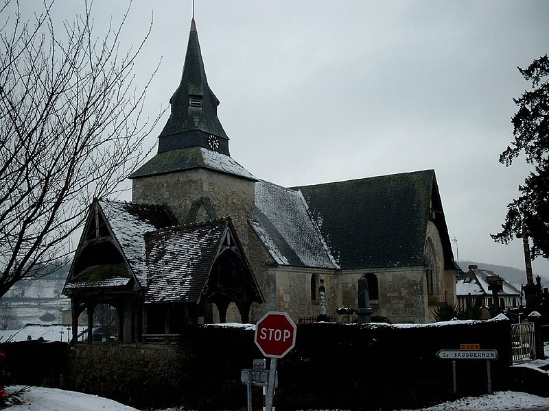 L'église adopte un plan en croix latine avec un chœur, une nef très courte et deux chapelles formant le transept aux bras sensiblement égaux. Les murs du chœur et le mur nord de la nef datent, comme la tour, du XIIIe siècle. Le retable du chœur, placé en 1854, remplace un autel du XVIIIe siècle élevé par la Confrérie de la Charité; le grand tableau de l'Assomption qui le surmontait se trouve aujourd'hui au fond de la nef. Les autels du transept, dédiés à la Très Sainte Vierge et à saint Roch, datent du XVIIIe siècle ; la statue blanche de la Vierge a été offerte en 1863, et l'autel peint en chêne ainsi que la statue de Notre‑Dame de la Salette ont été donnés en 1867. Plusieurs statues en bois figurent dans le sanctuaire : saint Pierre et saint Ouen à droite du maître‑autel, la Vierge à gauche et saint Jean à droite à l'entrée du chœur. L'ameublement du sanctuaire et la table de communion sont l'œuvre d'un artisan de Lisieux, constructeur de l'Oratoire. Sous le clocher, une table de pierre est scellée dans le mur et porte le texte d'une fondation pieuse faite en 1664 par le curé Marin Polliniez. Les deux grandes baies flamboyantes des croisillons sont de style ogival, les fenêtres de la nef datent de la Renaissance (XVIe siècle) et celles du chœur sont modernes. La grande porte conserve un mode original de fermeture : une poutre pivotante qui vient s'encastrer dans les murs.