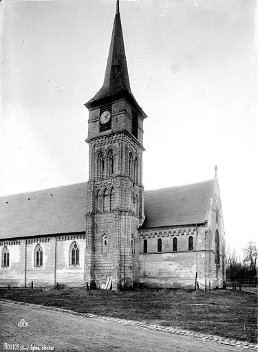 Le chœur, le clocher et une partie de la nef datent du XIIe siècle ; l'édifice a été bâti vers 1125-1175, à l'époque où la seigneurie de Routot appartenait à la famille de Montfort, qui possédait un manoir à proximité. Entre 1181 et 1189, Adeline de Montfort, ayant reçu la terre de Montfort de son père Hugues II de Montfort, fit donation de l'église, des dîmes et des dépendances à l'abbaye du Bec-Hellouin. En 1411, Hugues d'Amiens, archevêque de Rouen, confirma au Bec la possession de l'église Saint-Ouen de Routot. Les deux travées occidentales de la nef et la baie du chevet datent du XVe siècle, tandis que la chapelle nord et la façade occidentale ont été remaniées au XIXe siècle. En 1854, l'architecte Dupuis proposa un projet de restauration de la baie du portail occidental, portant notamment sur le réseau et la restitution des fleurons. D'importants travaux furent entrepris durant la seconde moitié du XIXe siècle ; les murs furent réparés vers 1862 pour 1 491 F. Le projet de l'architecte Simon pour la création d'une chapelle de la Vierge et d'une sacristie fut sévèrement critiqué tant sur le plan technique qu'esthétique par la commission départementale, qui lui demanda en 1867 de reprendre le dessin de la voûte et du comble de la sacristie. À la fin 1888, les travaux engagés sur adjudication étaient à peu près terminés, mais d'importants chantiers restaient à mener à l'intérieur comme à l'extérieur ; dans les mêmes années, une rénovation du chœur proposée par Simon menaçait d'effacer les derniers vestiges romans intérieurs. En mars 1889, l'architecte Gustave Cossard, de Brionne, présenta un devis de 10 800 F pour l'ouverture d'une fenêtre nord du chœur, la réfection complète du perron d'entrée et la fourniture de trois vitraux par la maison Louis Lichtenheldt-Koch de Beauvais ; ces travaux furent exécutés par l'entrepreneur Henri Lamain, également de Brionne. En 1919, l'administration des Beaux-Arts interdit de faire sonner les cloches, estimant que la tour classée risquait d'être ébranlée par le clocher dont la charpente reposait directement sur les murs. À la demande insistante des curés, parmi lesquels l'abbé Leroy, il fut décidé de renforcer la charpente et d'édifier une sorte de beffroi ; l'architecte Ruprich-Robert fut chargé des travaux en 1925. Ces travaux furent vivement contestés par la municipalité en 1926, mais la procédure technique adoptée par l'architecte fut finalement validée par l'administration. L'horloge qui dénaturait la façade fut enlevée vers 1948.