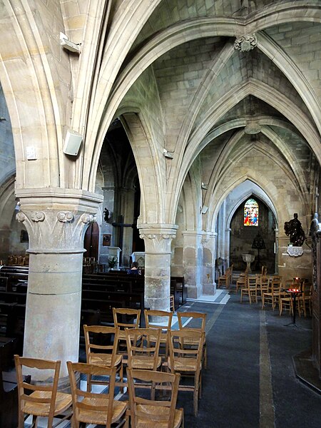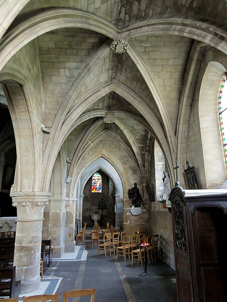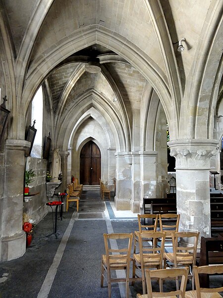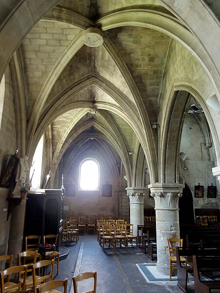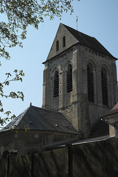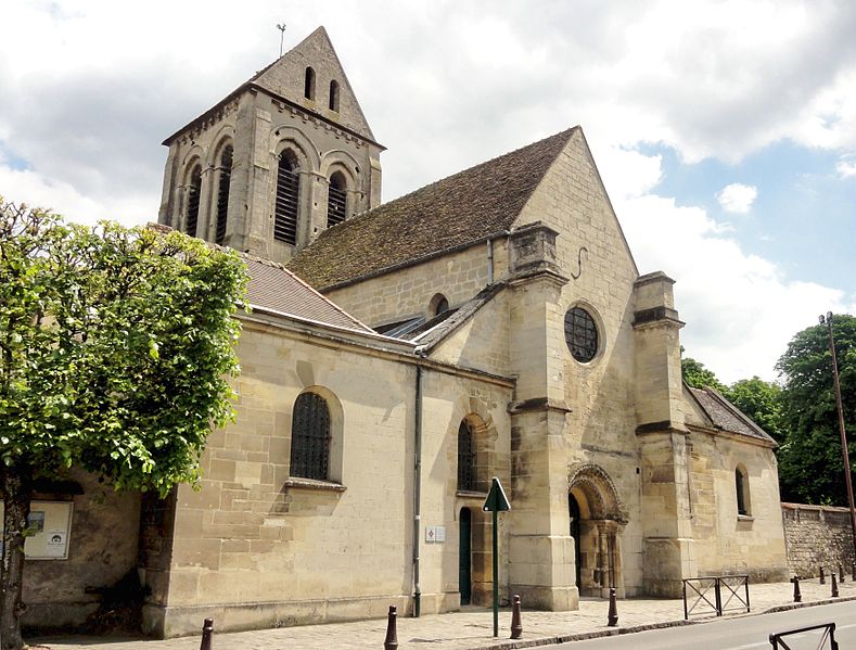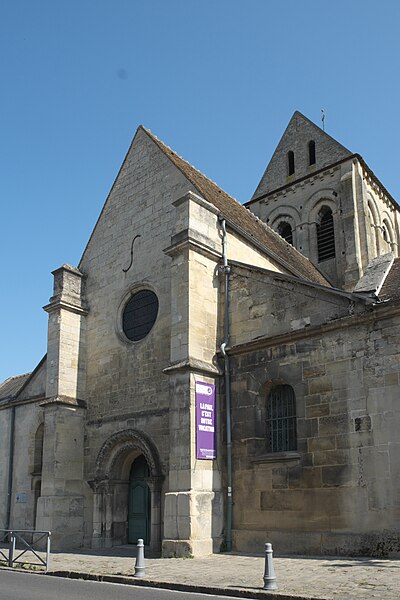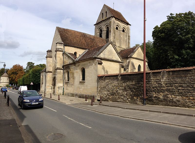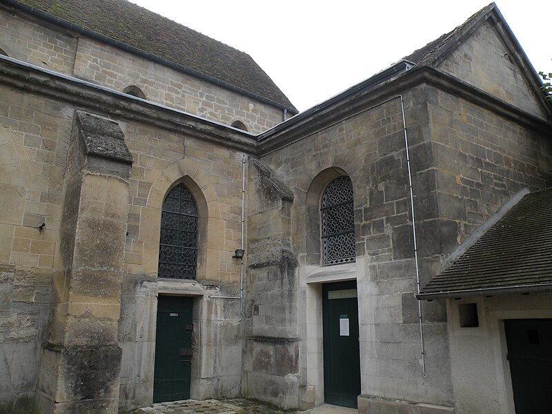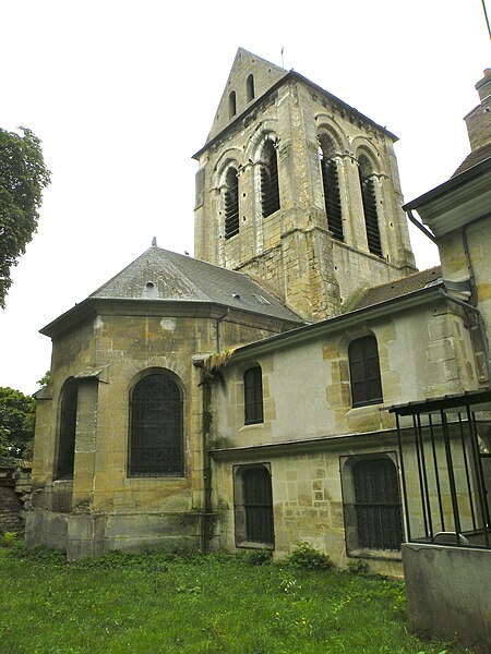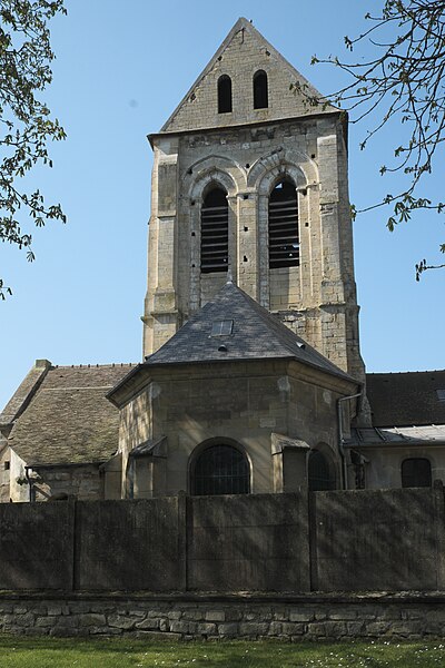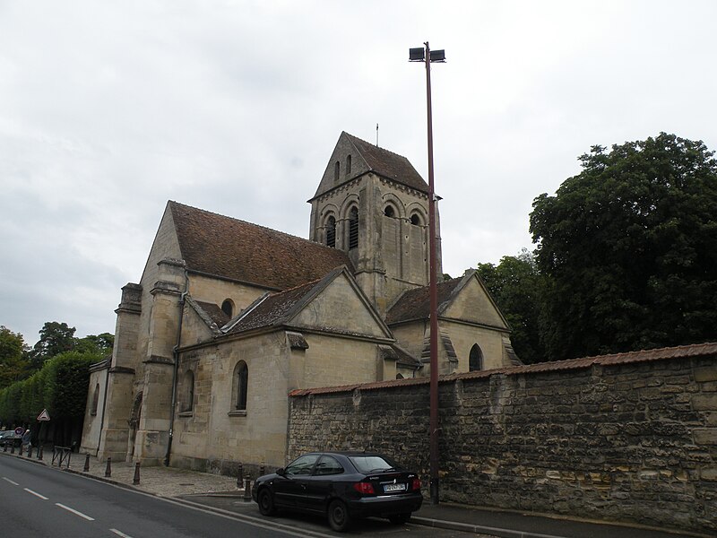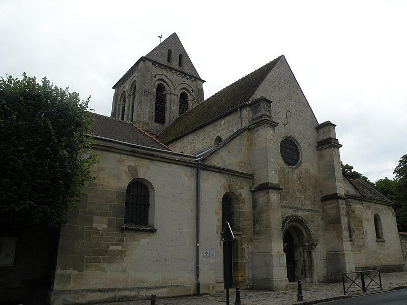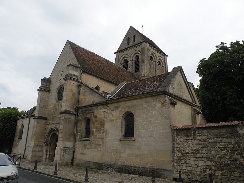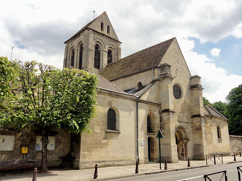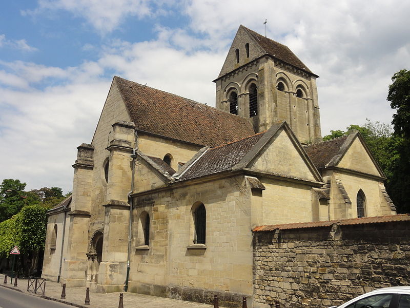 L’église Saint-Ouen de Saint-Ouen-l’Aumône, dans le Val-d’Oise, succède à une chapelle élevée à la fin du VIIe siècle ou au début du VIIIe siècle pour commémorer le passage du cortège funèbre de saint Ouen vers Rouen en 686. Cette chapelle primordiale, liée au développement du pèlerinage et peut‑être dotée de reliques, est reconstruite au cours de la première moitié du XIIe siècle dans le style roman ; seul le portail occidental subsiste de cette campagne. L’essentiel de l’édifice actuel résulte d’une reconstruction engagée à la fin du XIIe siècle et poursuivie jusqu’au milieu du XIIIe siècle, qui a notamment concerné l’absidiole, le transept et la nef. Les dimensions modestes de l’église, longtemps perçue comme une chapelle, s’expliquent par sa situation périphérique et, peut‑être, par l’existence d’un second lieu de culte ancien consacré à saint Hilaire. La paroisse apparaît clairement au milieu du XIIIe siècle et la cérémonie de dédicace de l’église est rappelée par une plaque commémorative : elle fut célébrée le 6 mai 1499 par l’évêque de Paris Jean‑Simon de Champigny. Au fil des siècles, la nef et les bas‑côtés sont voûtés d’ogives dans le style gothique flamboyant à la fin du XVe ou dans la première moitié du XVIe siècle, tandis que des remaniements et restaurations importants interviennent aux XVIIIe et XIXe siècles. Après un dallage refait au XVIIIe siècle qui a fait disparaître de nombreuses tombes anciennes, l’église, presque en ruines après la Révolution, fait l’objet au XIXe siècle d’une restauration lourde : adjonction de deux chapelles latérales, restauration du portail, reprise de la croisée du transept, transformation de l’absidiole nord en sacristie et reconstruction totale du chœur en 1837. Ces interventions ont altéré l’unité stylistique de l’édifice, mais les parties anciennes et modernes s’accordent harmonieusement et l’intérêt archéologique de l’église demeure indéniable. L’église Saint‑Ouen a été inscrite à l’inventaire des monuments historiques par arrêté du 16 juin 1926. Sur le plan ecclésial, la paroisse relève successivement du nouveau diocèse de Versailles après la Révolution, puis du diocèse de Pontoise lors de sa création en 1966 ; elle couvre aujourd’hui principalement le territoire communal. L’église conserve quelques reliques et éléments mobiliers d’origine diverse et demeure le principal lieu de culte catholique de la commune, avec une vie liturgique soutenue comprenant plusieurs messes en semaine et des messes dominicales tout au long de l’année.