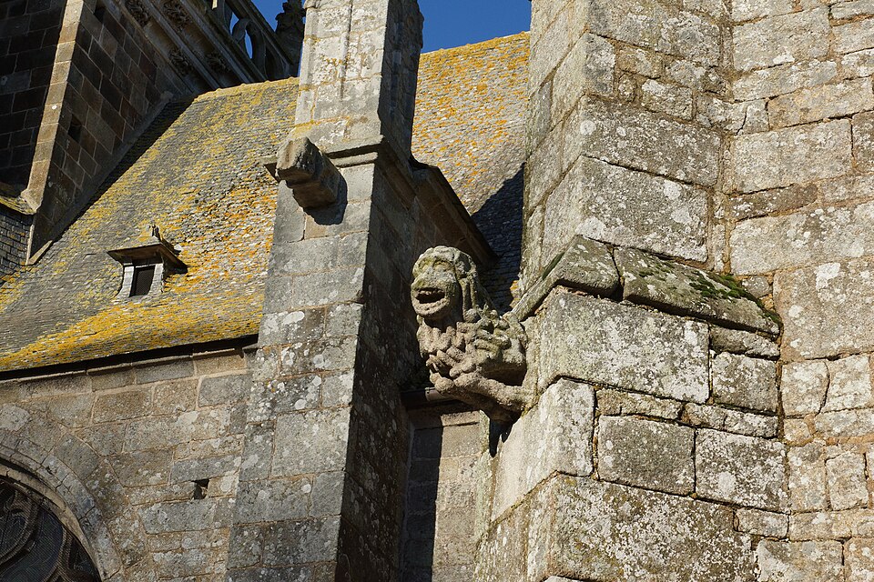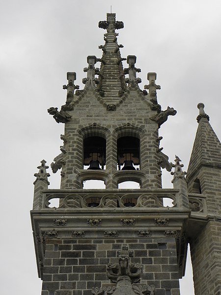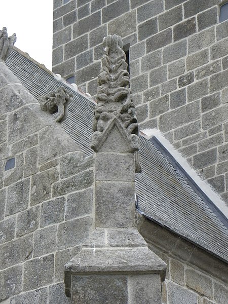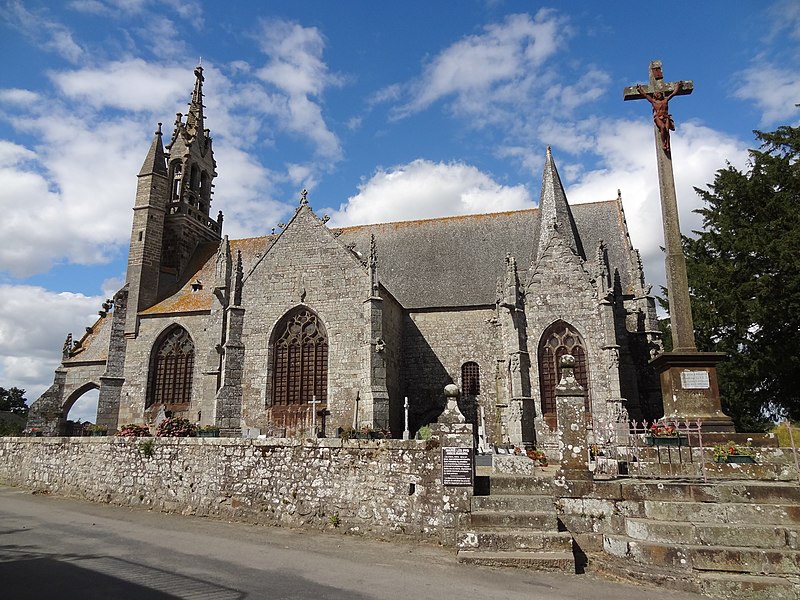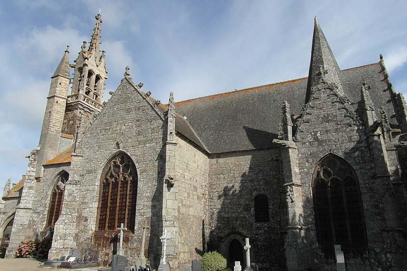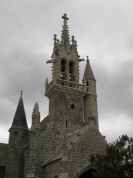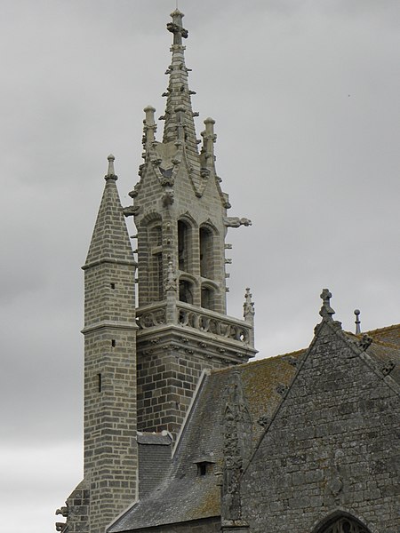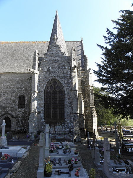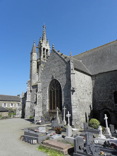 La nef et les bras du transept sont voûtés en bardeaux sur une charpente qui, bien que remaniée, reste conforme à l'ordonnance originelle. À la fin du XVe siècle, la nef a été allongée et la nouvelle travée couverte d'une voûte à nervures diagonales et liernes ; un porche a été adossé au pignon ainsi créé. Au XIXe siècle, sur un projet d'Arthur Regnault, les frères Jules et Henri Mellet ont élevé le clocher-pignon, de style néogothique cornouaillais, ajouré de manière à laisser voir les cloches ; l'une d'elles, Marguerite, avait été offerte en 1596 par Marguerite d'Ailly, veuve de l'amiral de Coligny, et quatre autres cloches datent de 1958. Le clocher a fait l'objet de travaux de restauration récents, dont le démontage de la flèche en 2016.